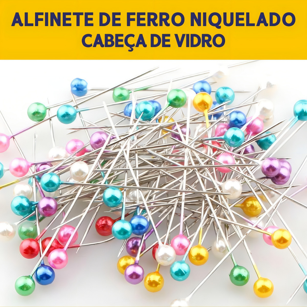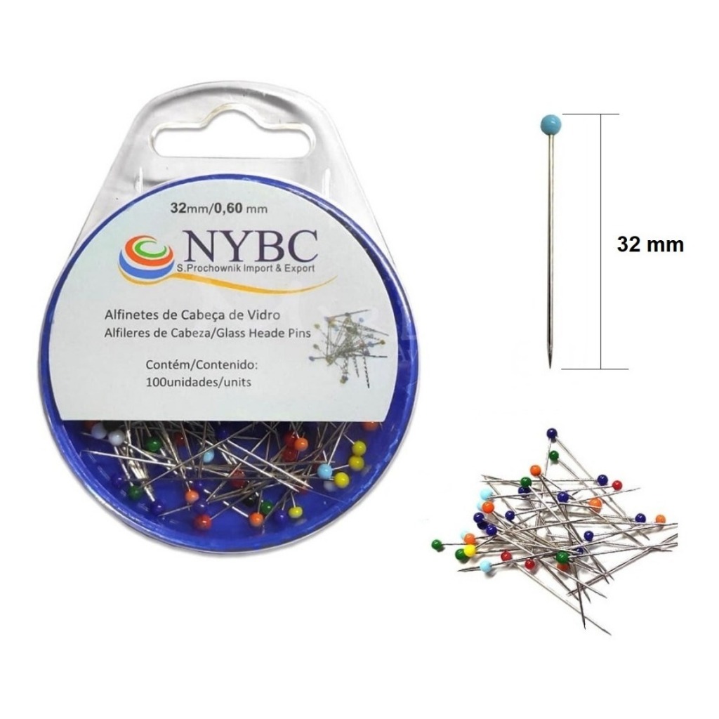 Kit 4 Alfinete Cabeça De Vidro Colorido 32mm Nybc Com 100 Unidades Ideal Para Grandes Projetos