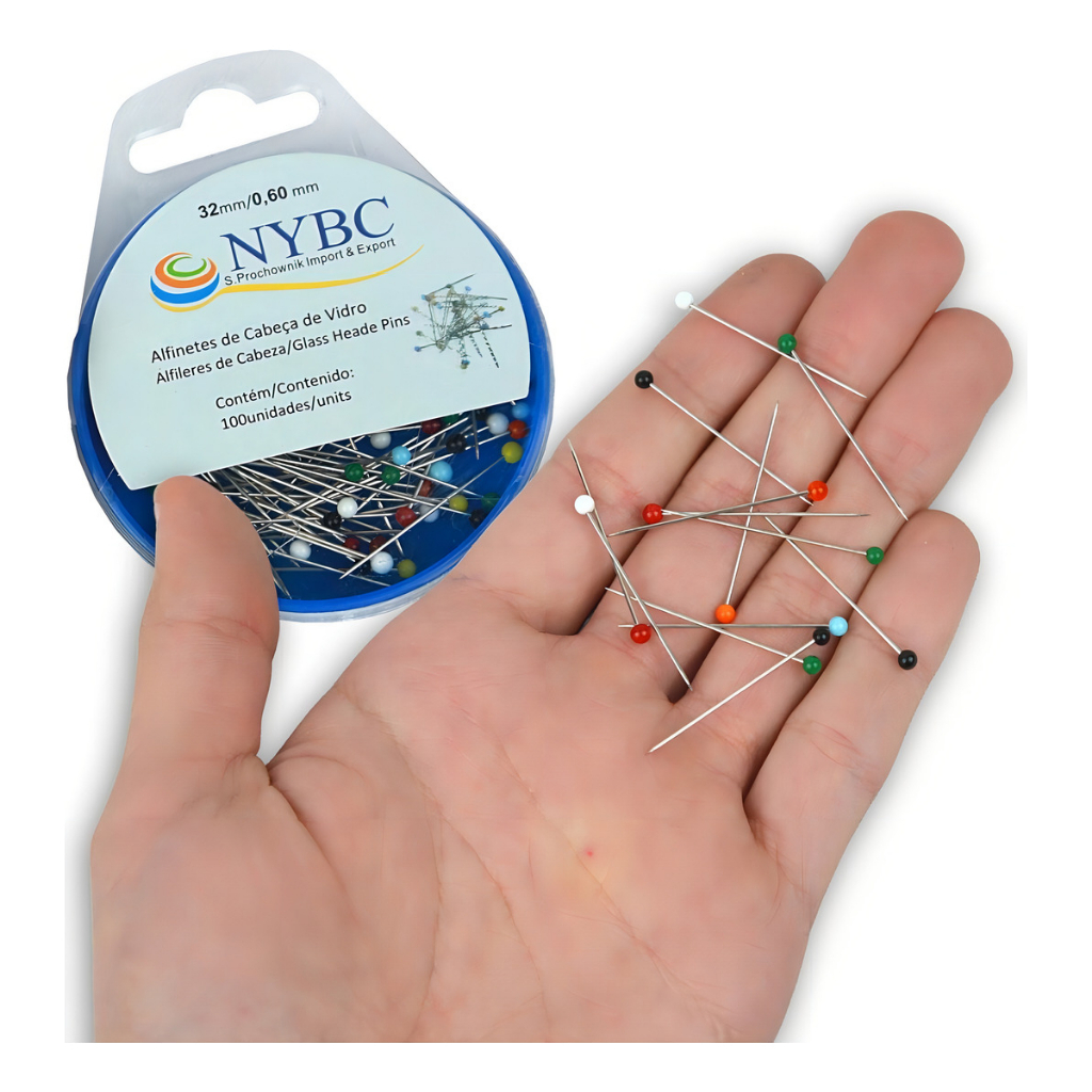 Kit Alfinete Cabeça de Vidro 200 Unidades NYBC Ideal Para Grandes Projetos Manter Seu Kit De Costura