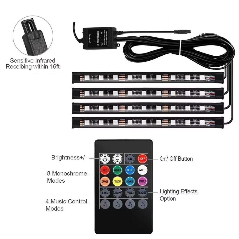 Kit 4 Barras LED Neon RGB Rítmico Carro Sensor Musical Controle App