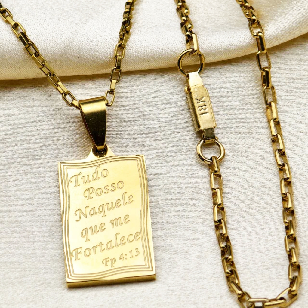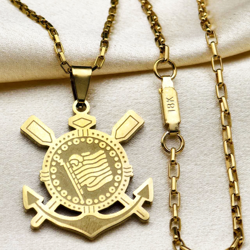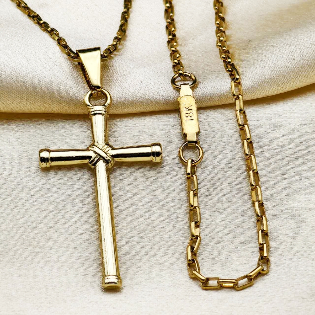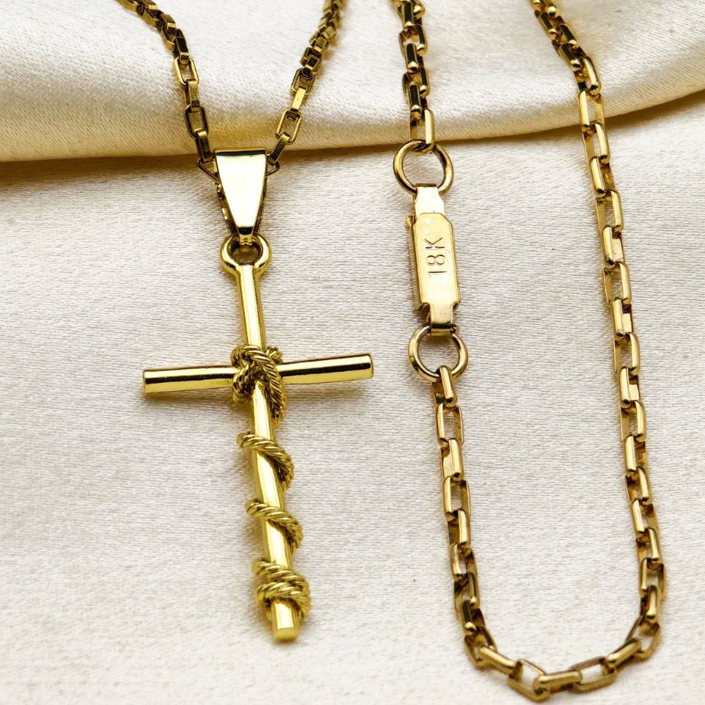 Kit Corrente Pulseira e Pingente homens mulheres Cruz Banhado a Ouro 18K com Detalhe em Moeda Antiga