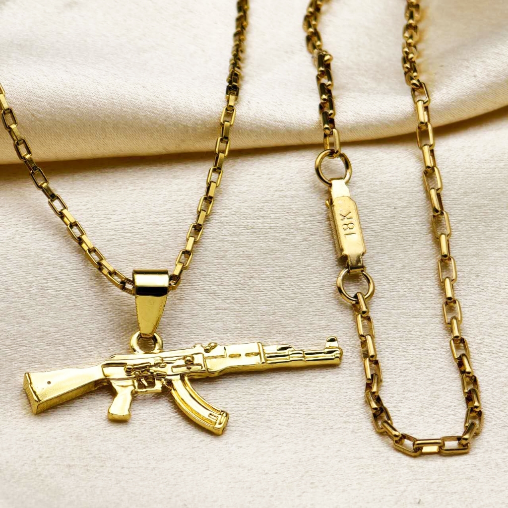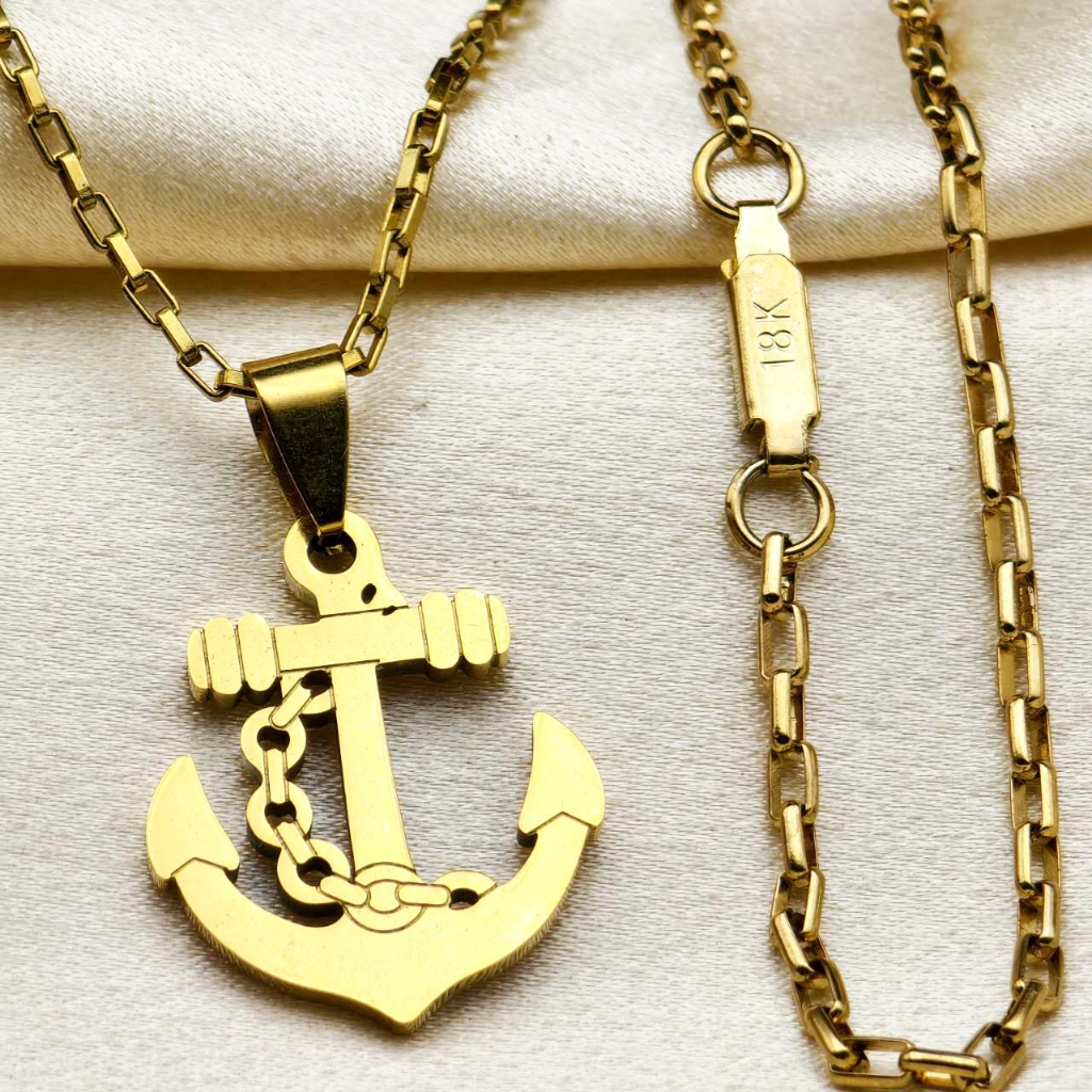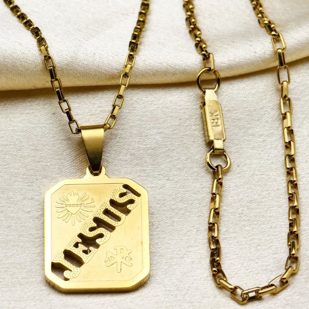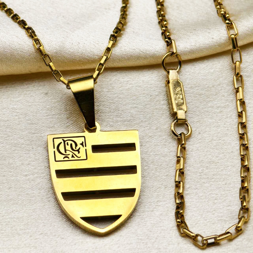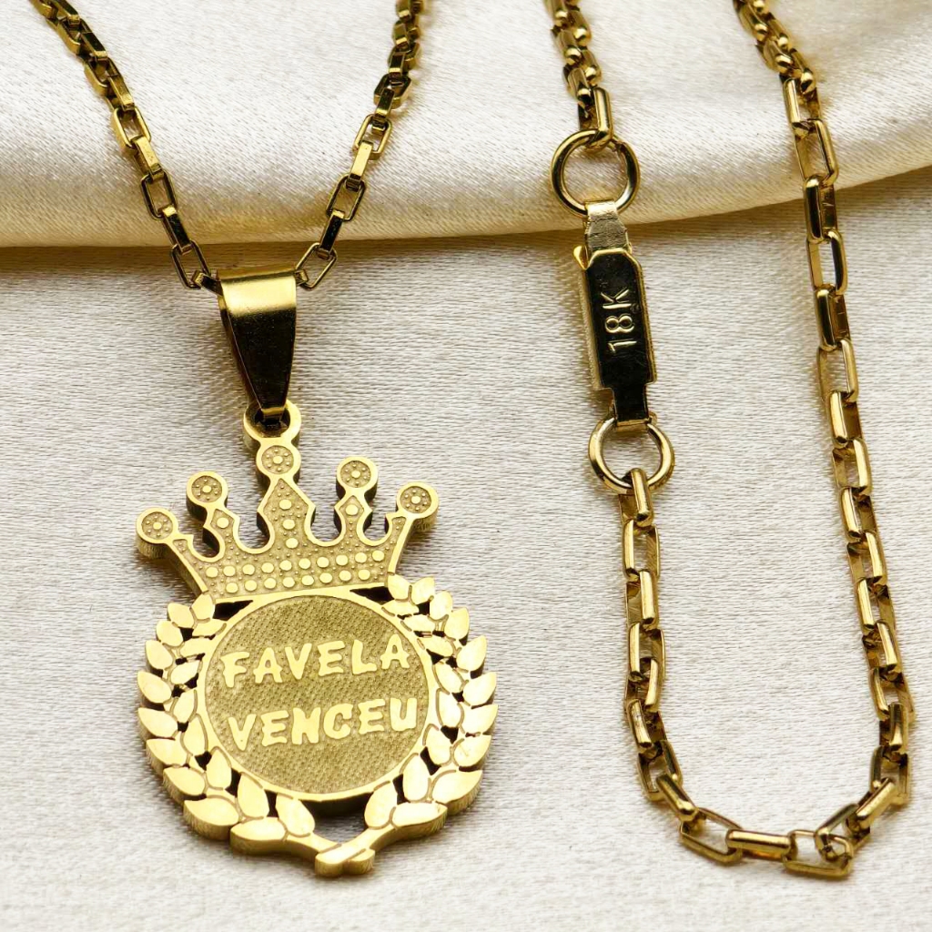 Kit Corrente Pulseira e Pingente homens mulheres Cruz Banhado a Ouro 18K com Detalhe em Moeda Antiga