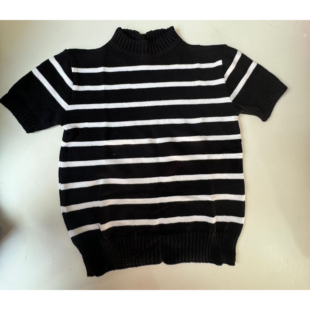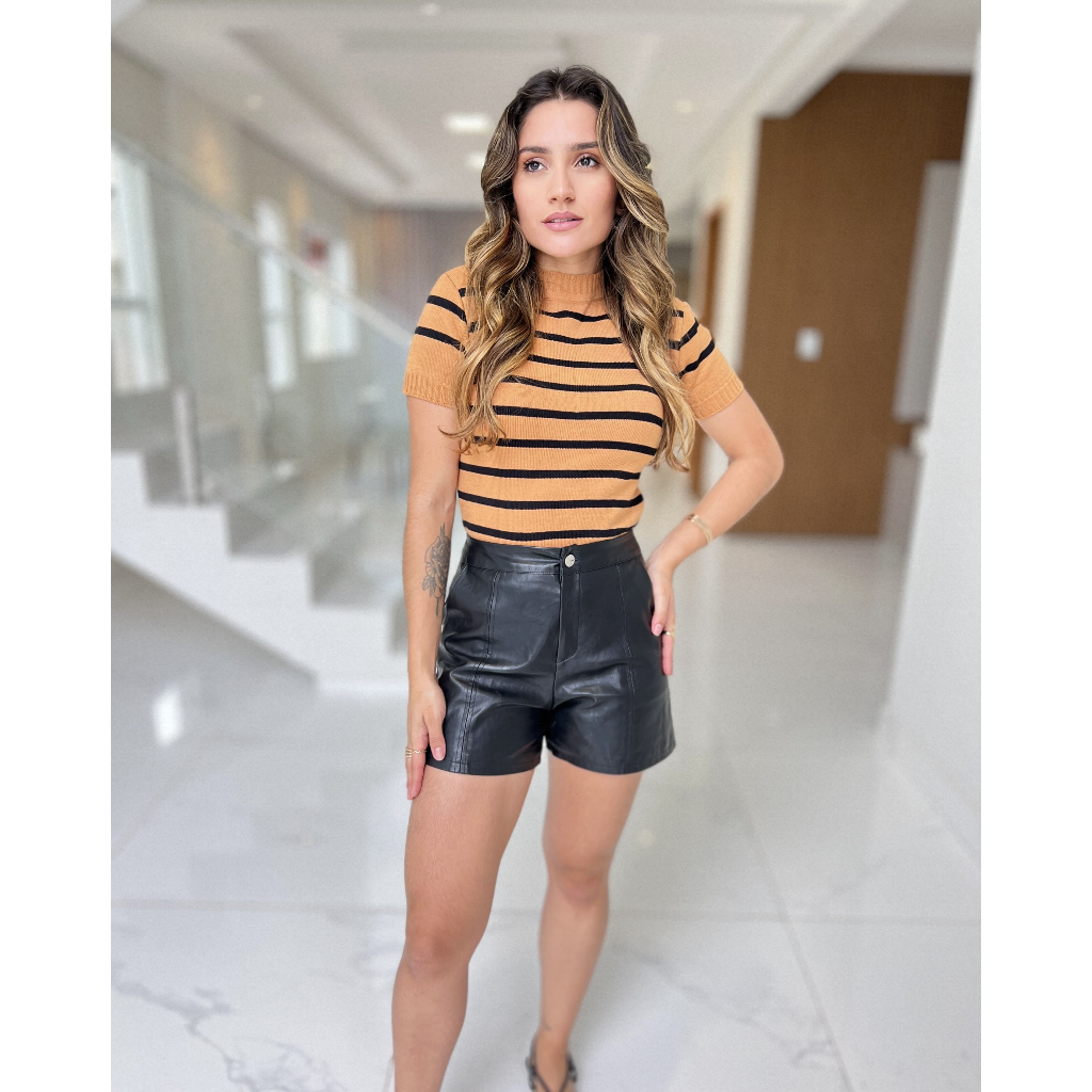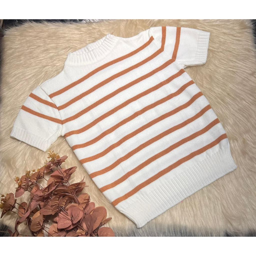 Blusa Modal Listrada Bicolor Sofisticada Manga Curta Básica Tricot Verão Marister Malhas