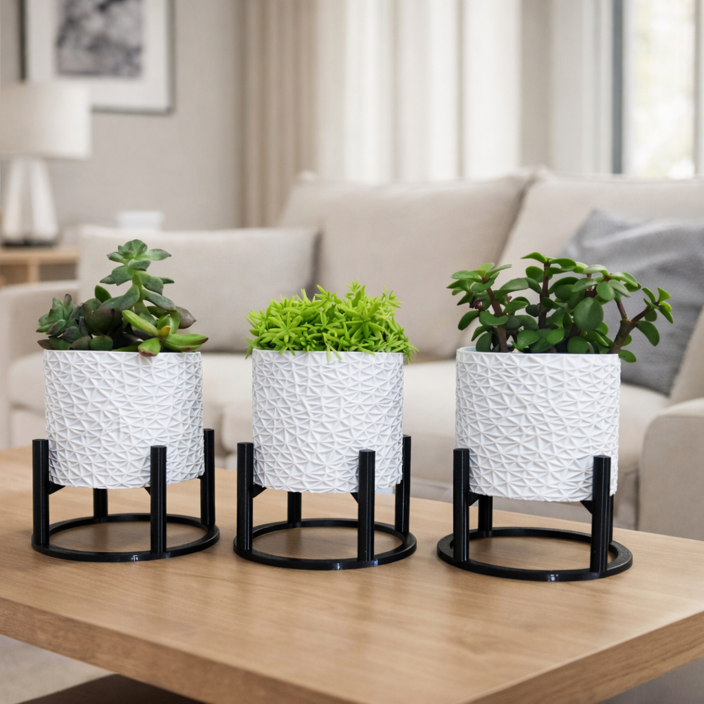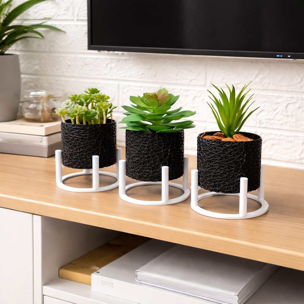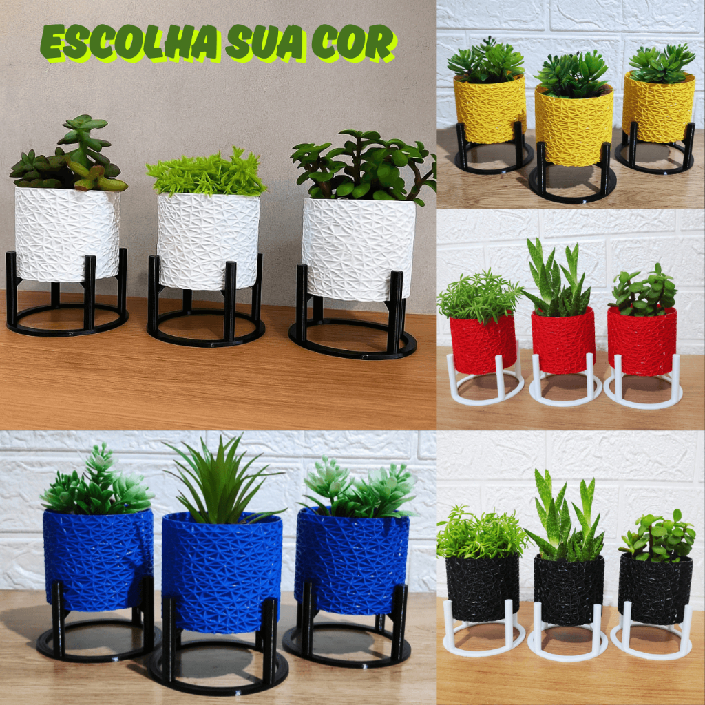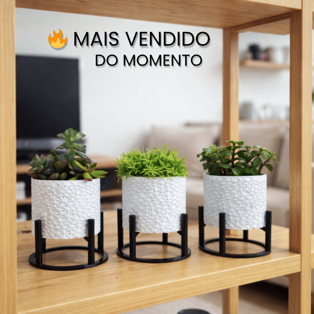 Kit 3 Vasos Decorativos para Suculentas Craquelados com suporte de pezinho Cachepot