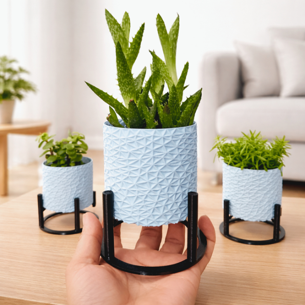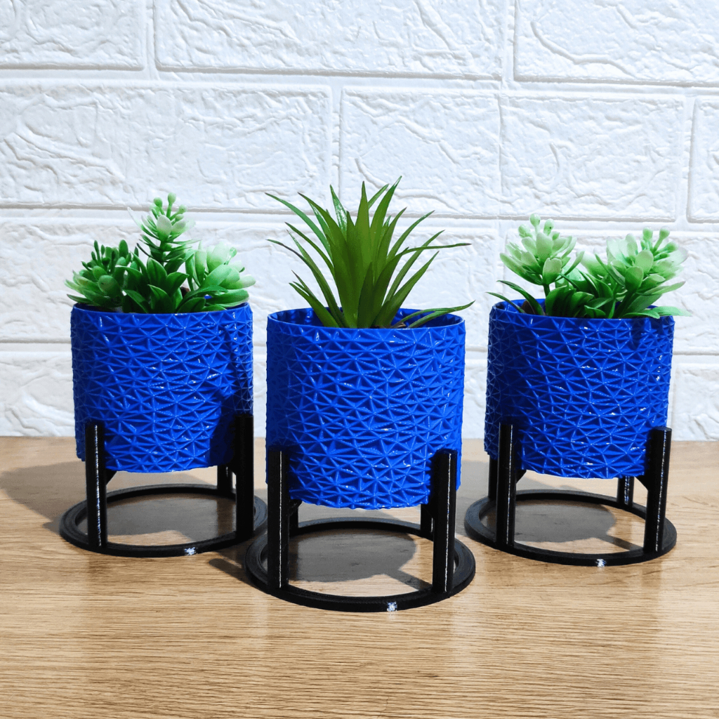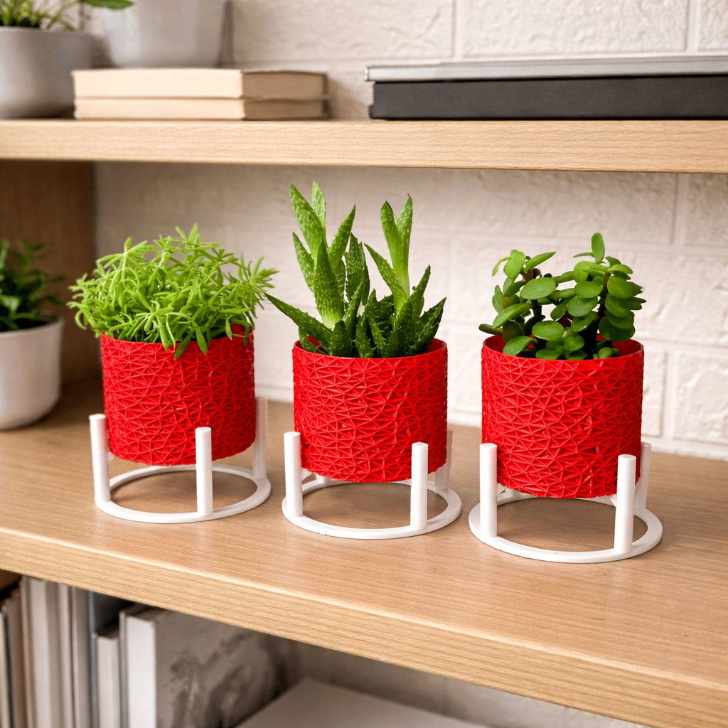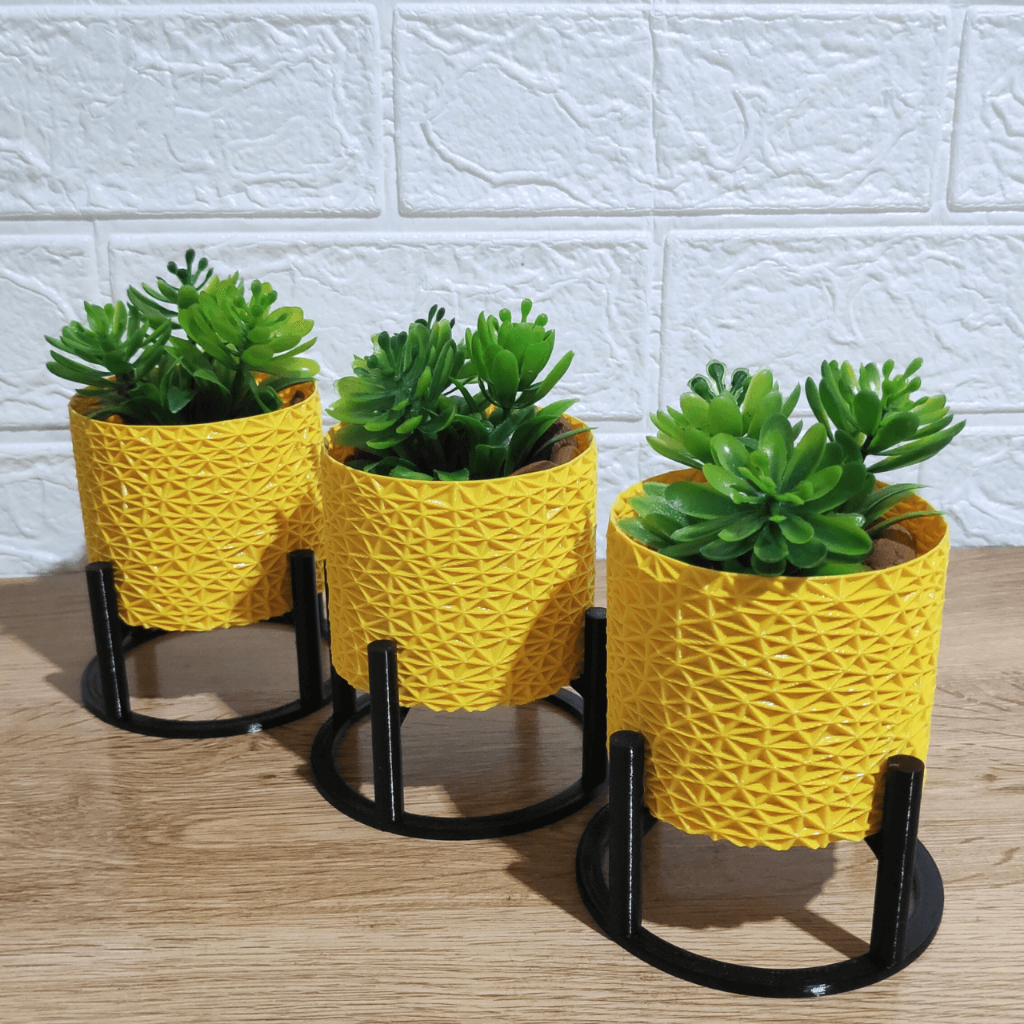 Kit 3 Vasos Decorativos para Suculentas Craquelados com suporte de pezinho Cachepot