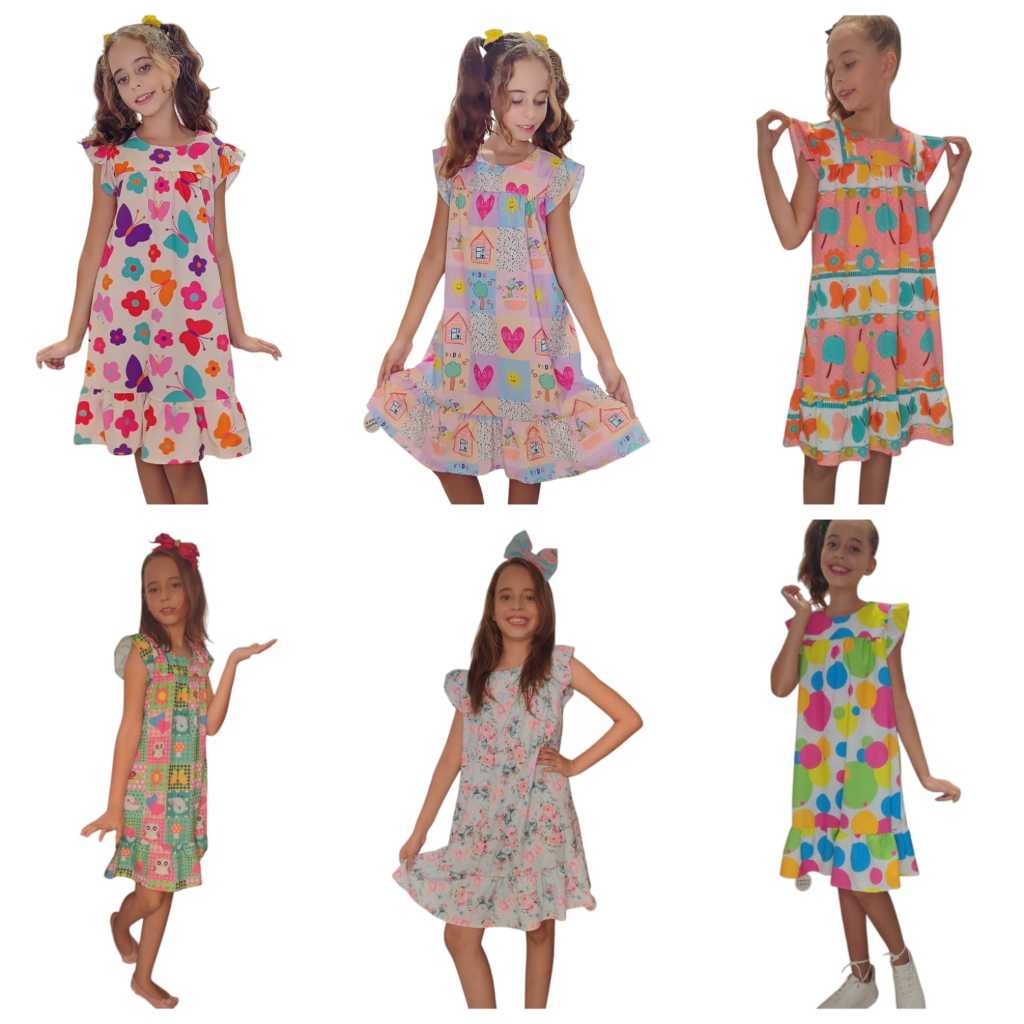 Vestido Trapézio Infantil e Juvenil Menina Sortido Casual Criança e Adolescentes Festa Boneca