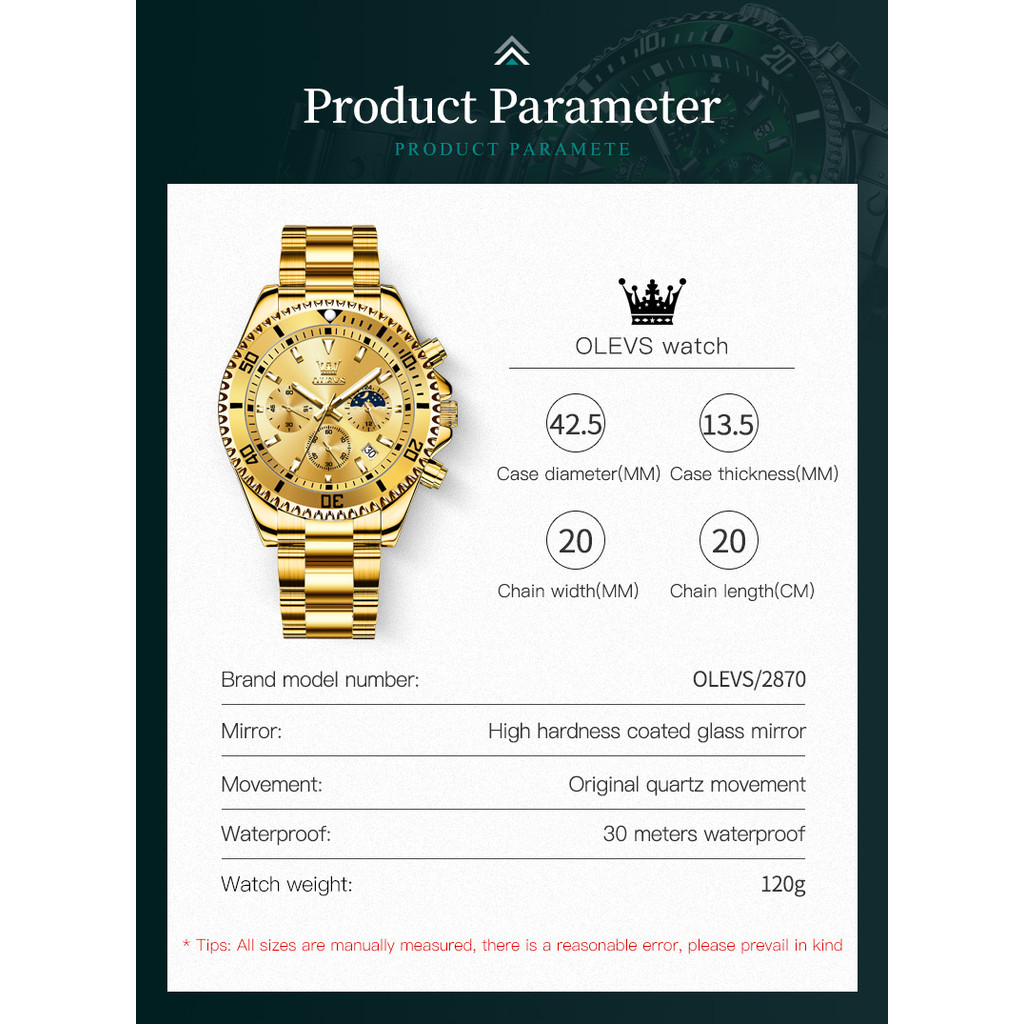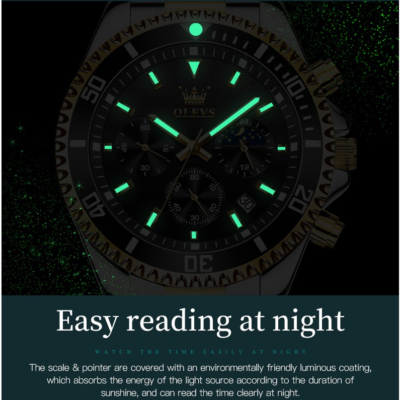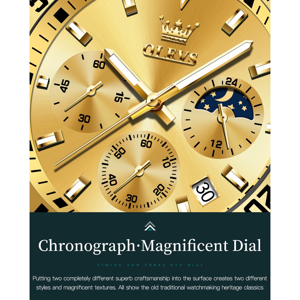 OLEVS Relógio Masculino De Quartzo De Alta Qualidade , Esportivo , À Prova D'água , Lua , Marca Superior , Aço Inoxidáve