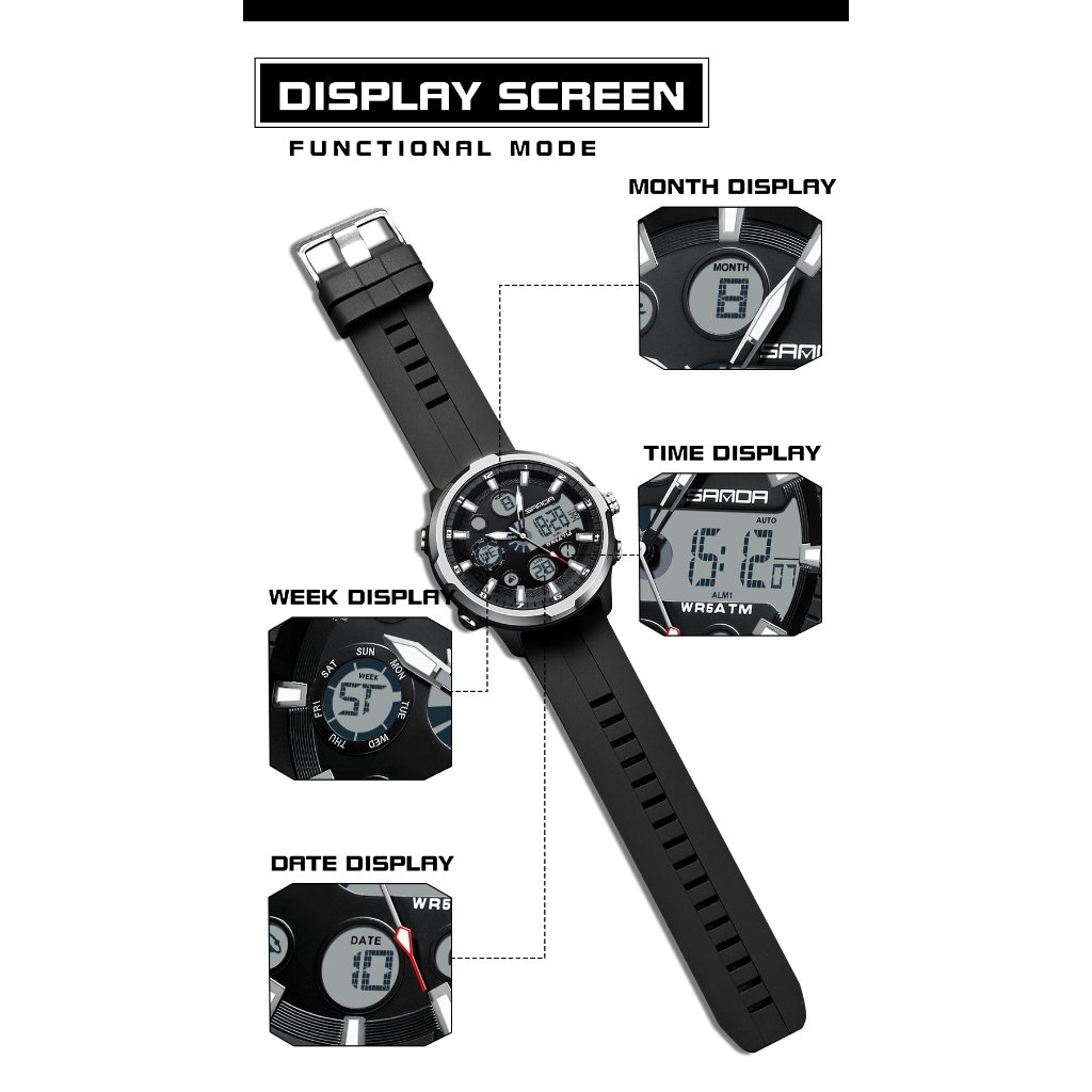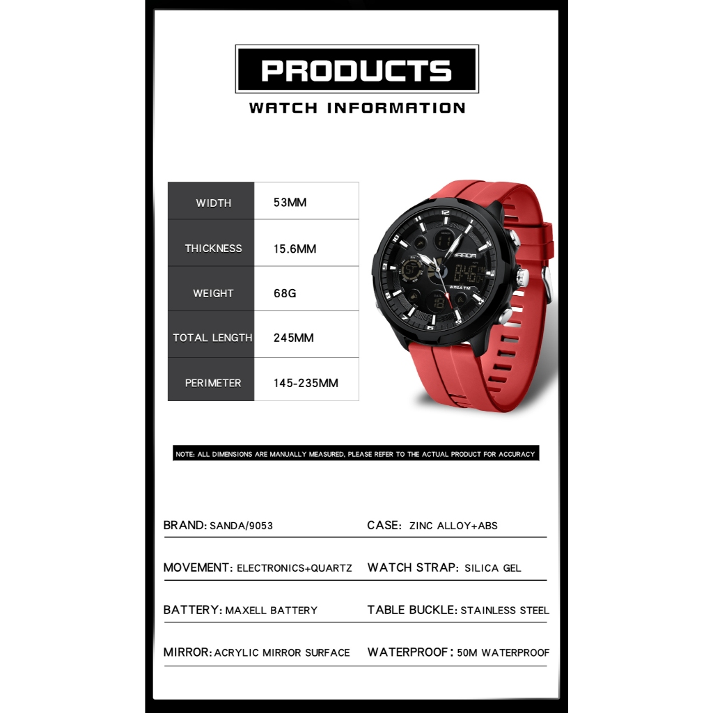 SANDA Top Marca 9053 Esportes Militares Relógios Masculinos Relógio Digital De Luxo Relogios Masculino 50M De Pulso De Q