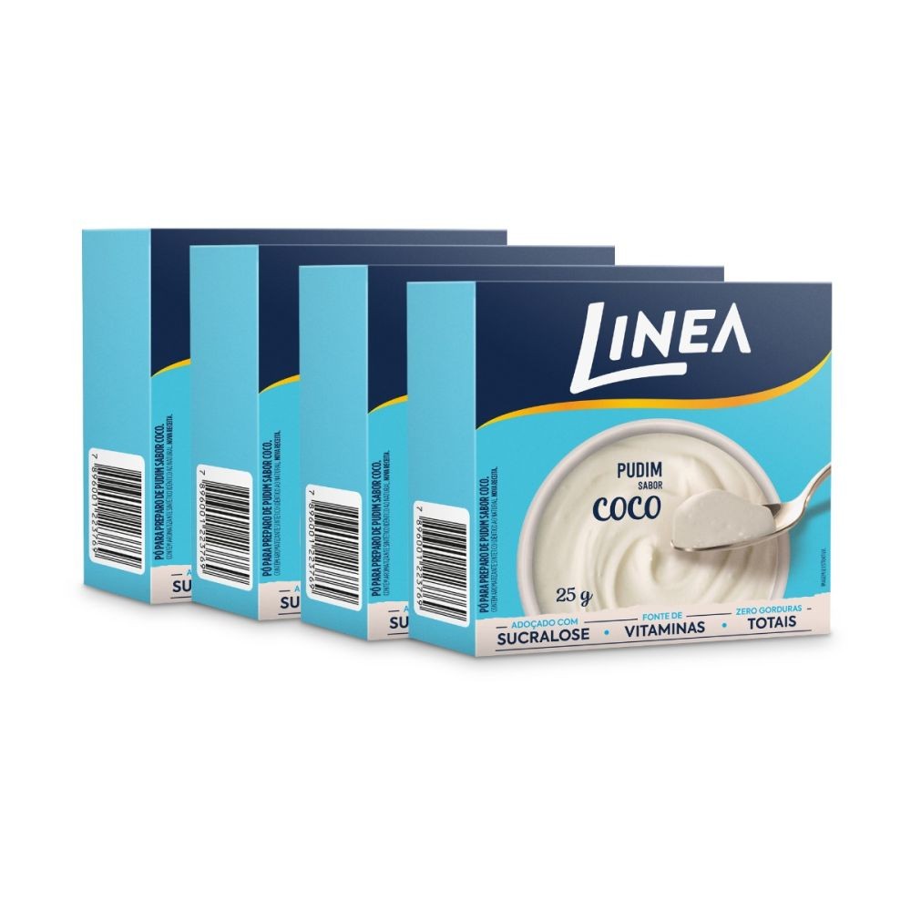 Kit 4 Pudins em Pó Linea Sabor Coco 25g