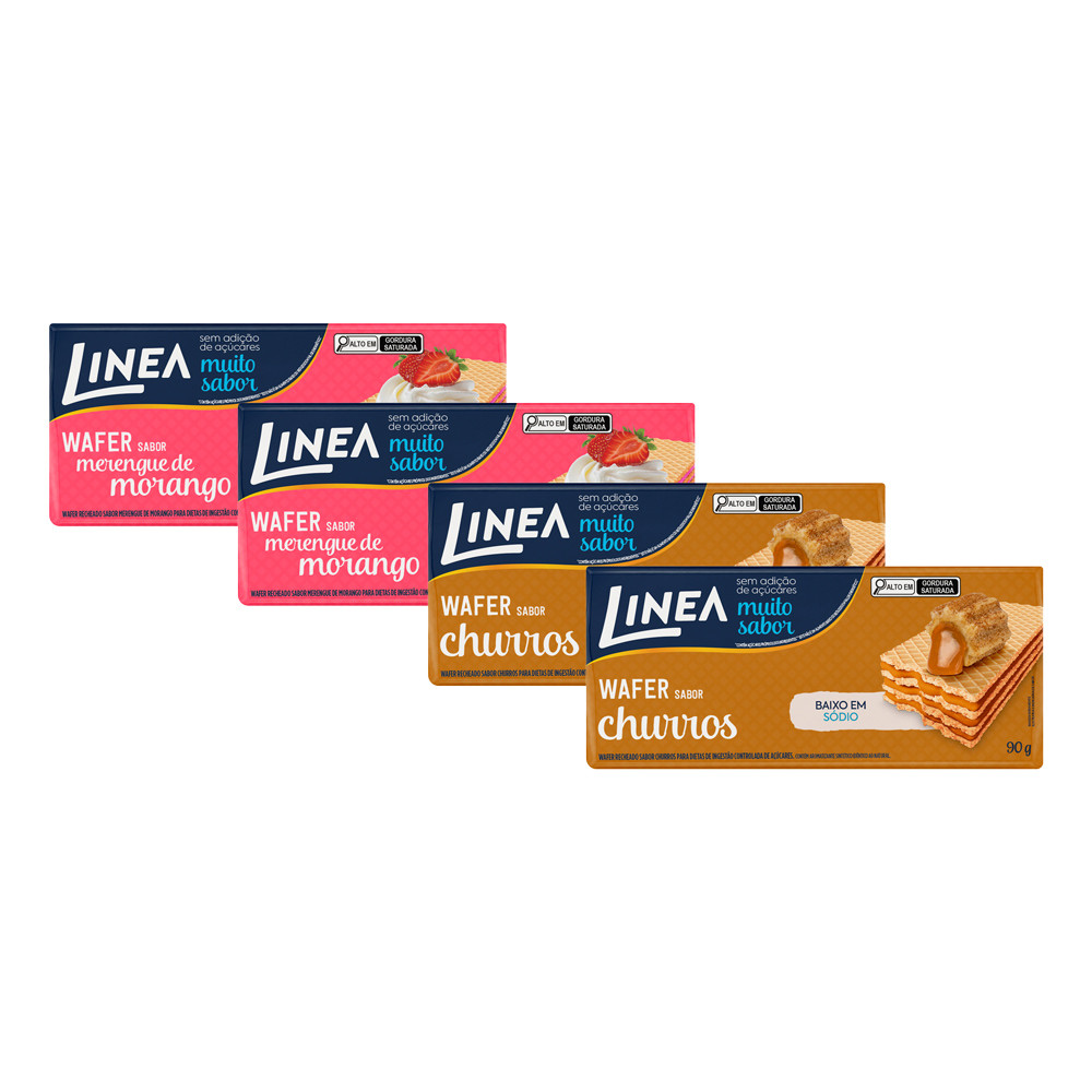 Kit 4 Wafers Linea Sabor Churros e Morango de 90g
