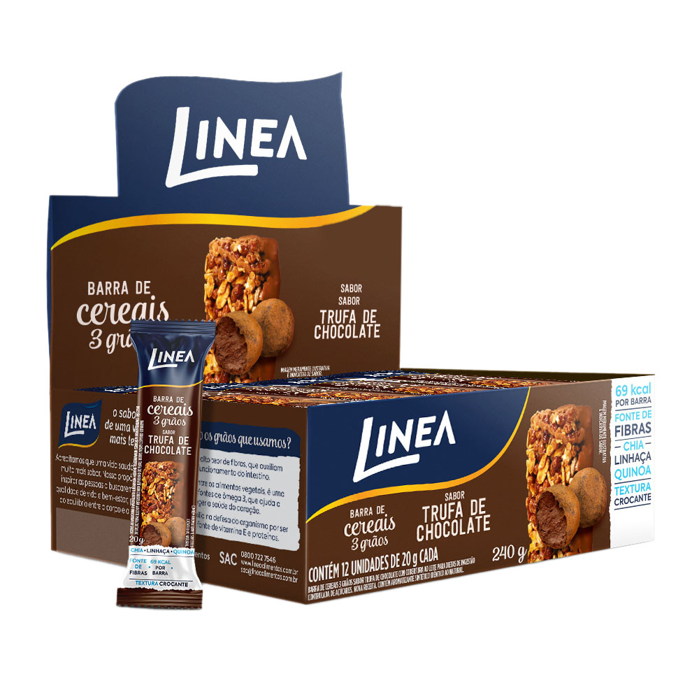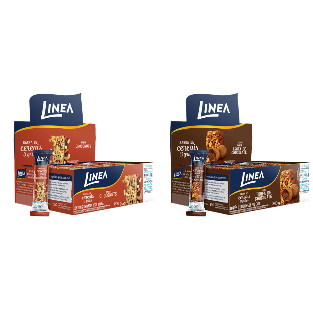 Kit 2 Caixas de Barra de Cereal 3 Grãos Integrais Linea Sabor Trufa de Chocolate e Choconuts 12 unidades de 20g