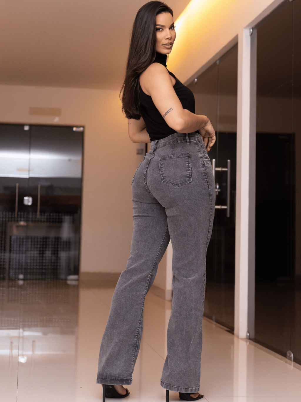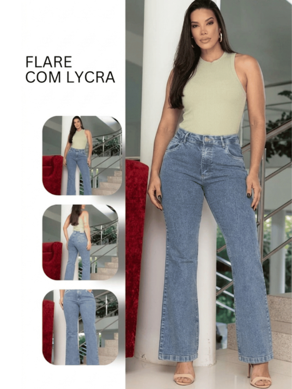 Calça Flare Boca De Sino Cintura Alta Levanta Bumbum Com Lycra Premium