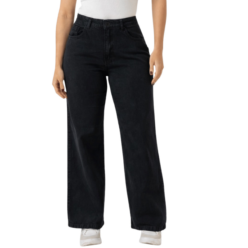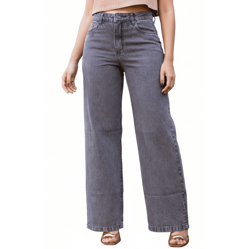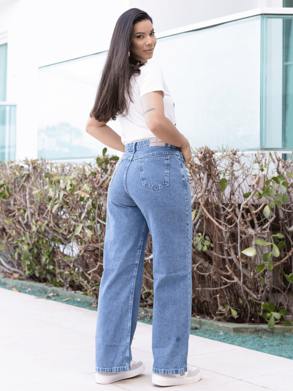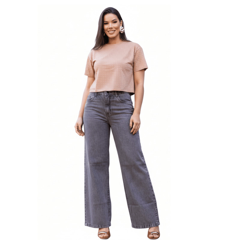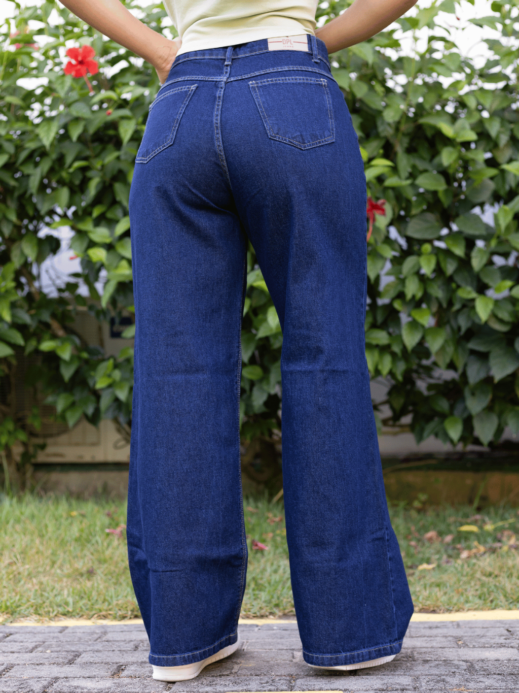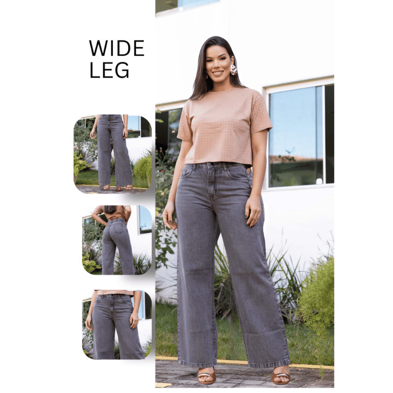 Calça Jeans Feminina Pantalona Wide Leg Cintura Alta 100% Algodão Premium Tendência 2026 Não Encolhe