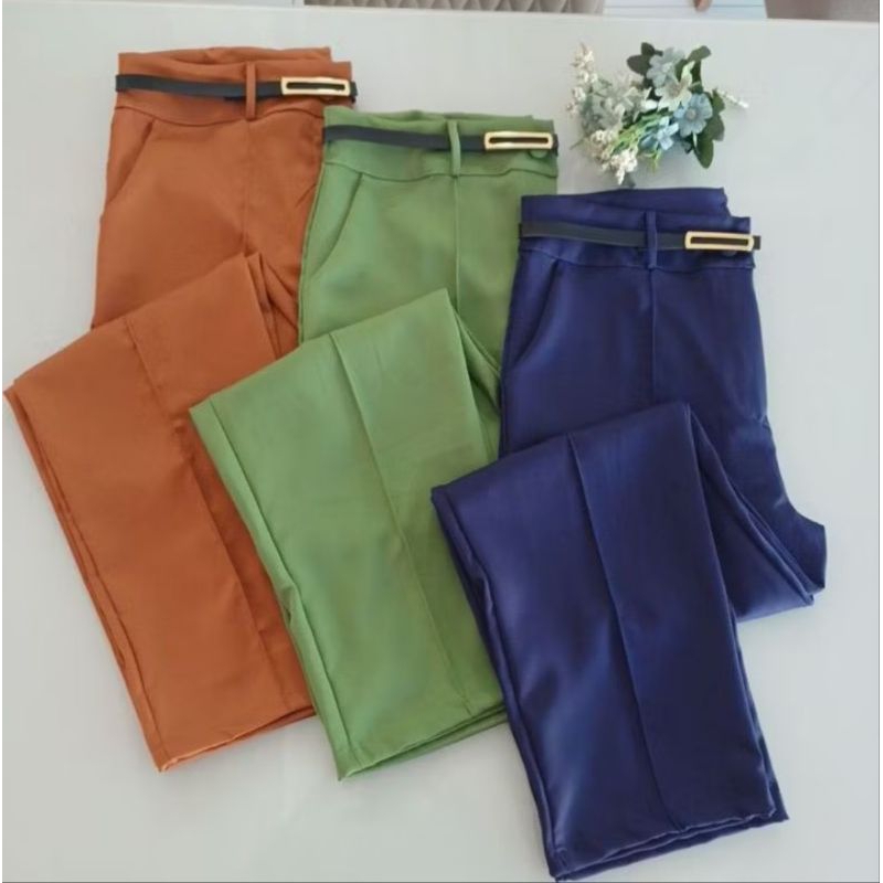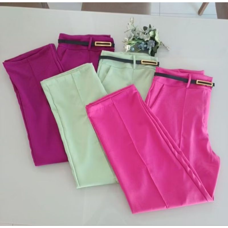 Calça Alfaiataria Feminina Plus Size Com Zíper e Botão Social Acompanha o Cinto