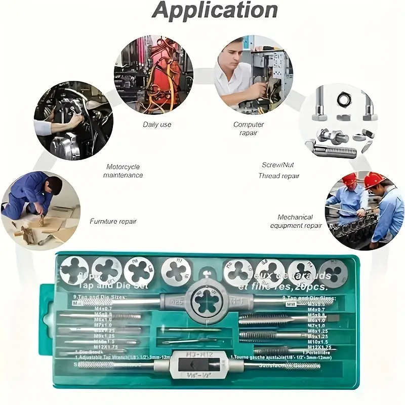 Kit Macho E Tarracha Jogo 20 Peças Para Aço Madeira Alumínio