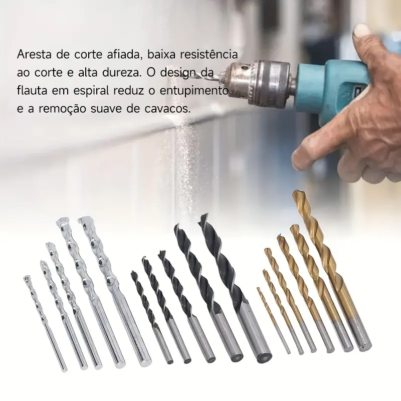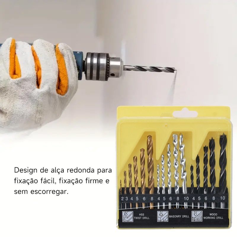 Jogo De Brocas 16 Peças C/ Estojo Madeira Ferro Concreto Metal Videa Aço Para Furadeira Parafusadeira Fertak