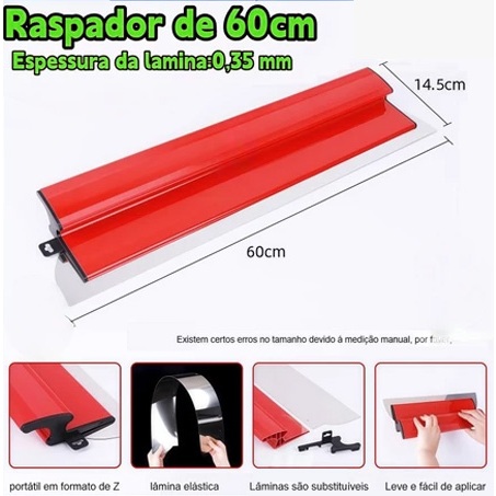 25/60cm Desempenadeira Aço Inox com Lâmina Flexível Lisa Para Massa Corrida com Troca de Lâmina