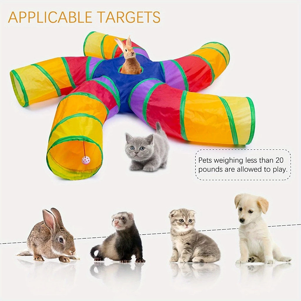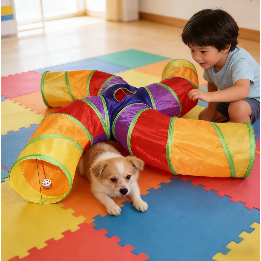 Túnel Colorido Dobrável para Pets - Brinquedo Interativo e Labirinto para Gatos Coelhos e Cachorros