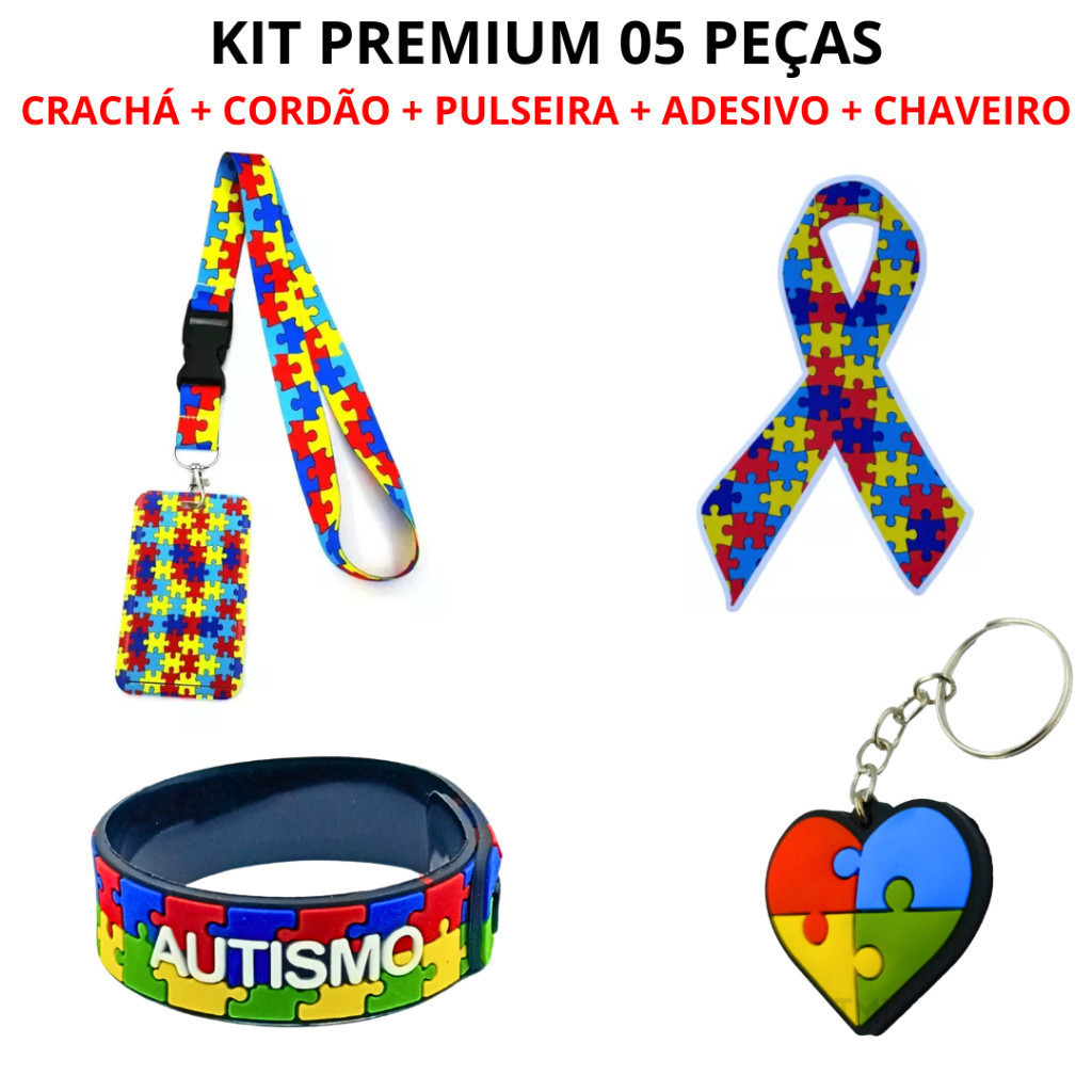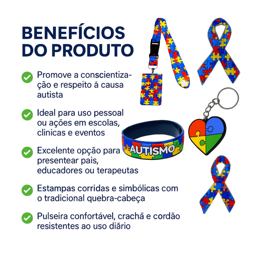 Porta Crachá com Cordão Autismo Kit com Pulseira, Chaveiro e Adesivo Kit Completo de Identificação Bilhete Único TEA TOD