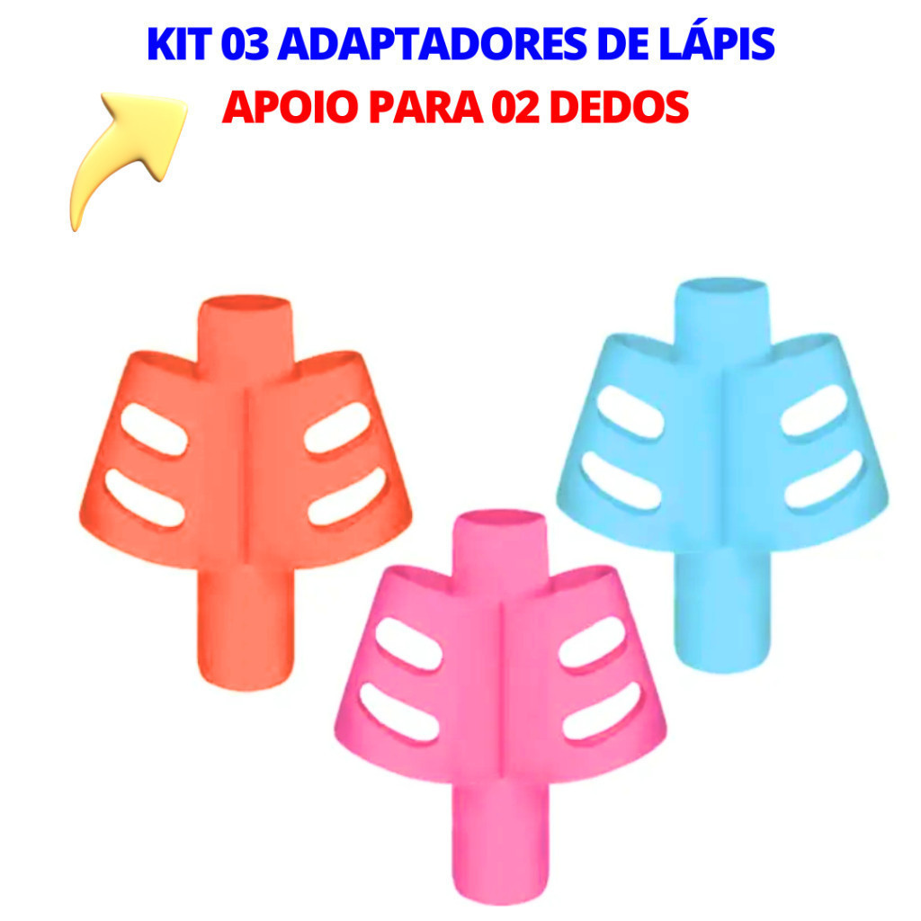 Kit 3 Adaptadores para Lápis Ergonômico para Escrita Apoio 2 Dedos Encaixe Infantil Corrige Pegada Escrita Autista TDAH