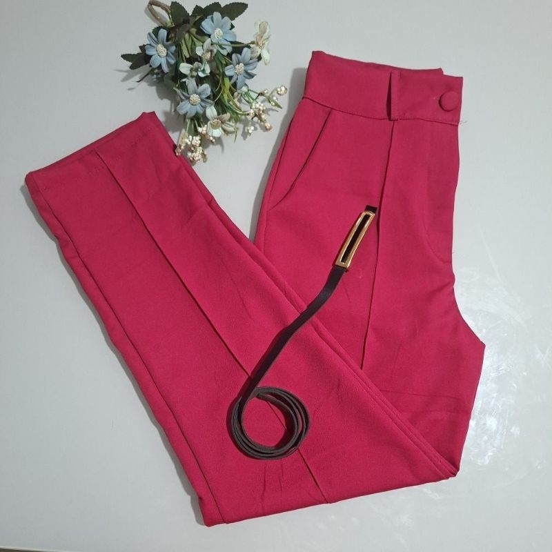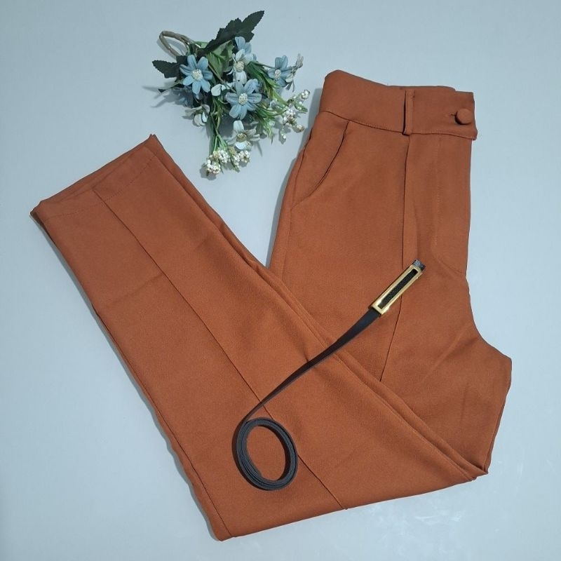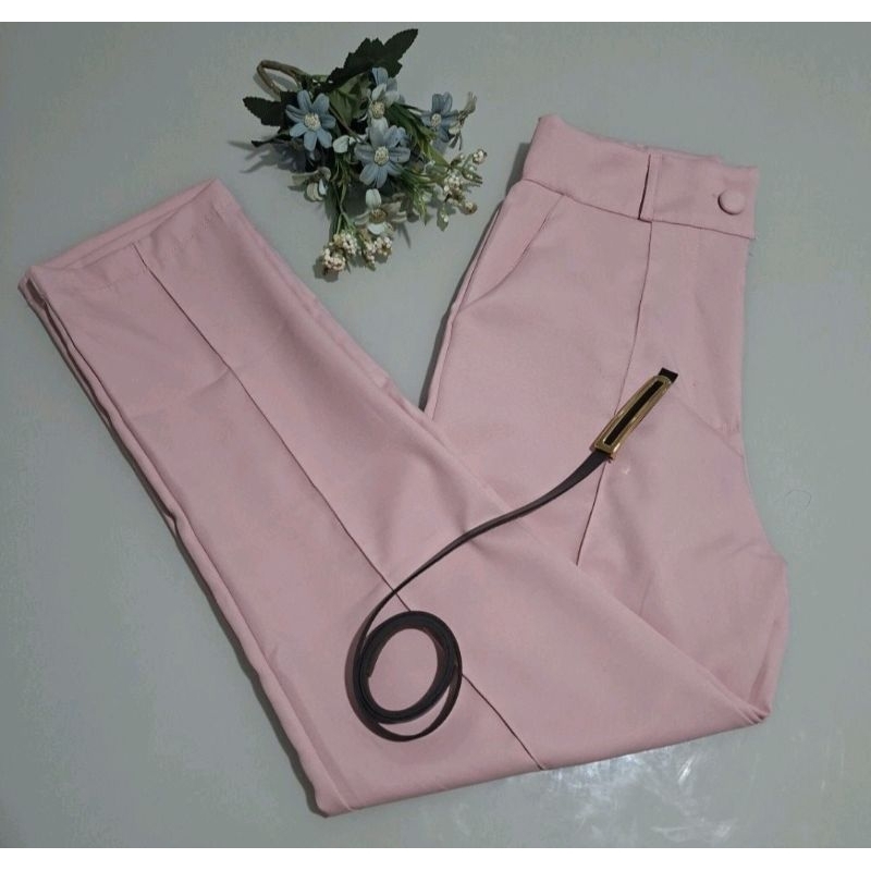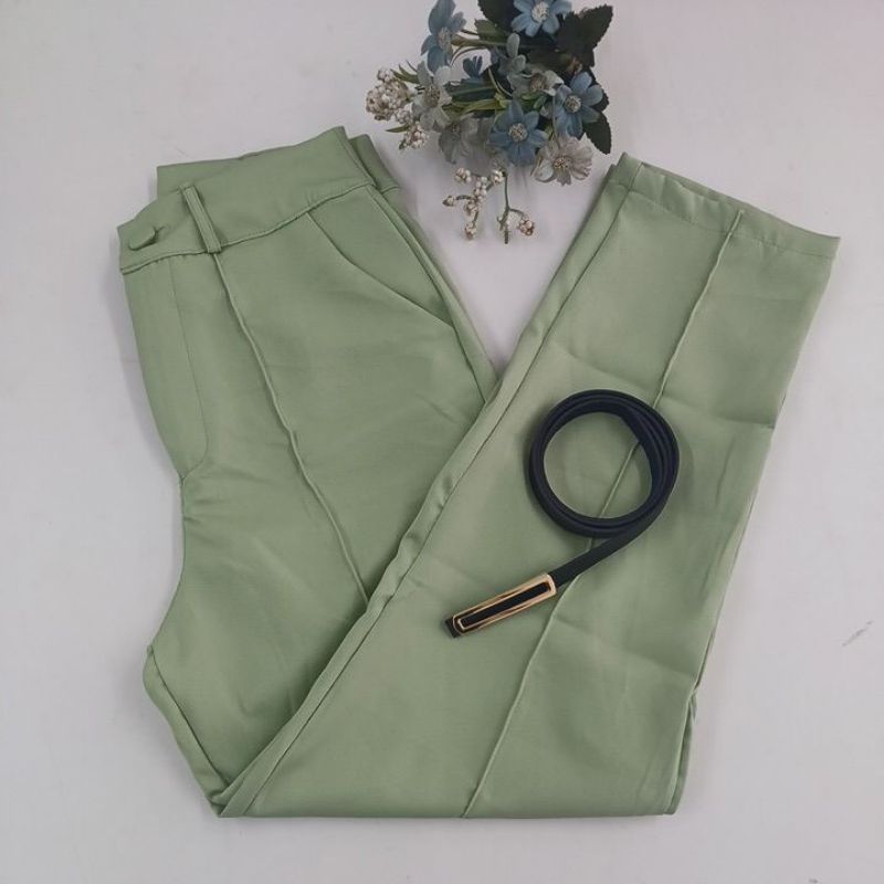 Calça Alfaiataria Feminina Tradicional Com Cinto Moda