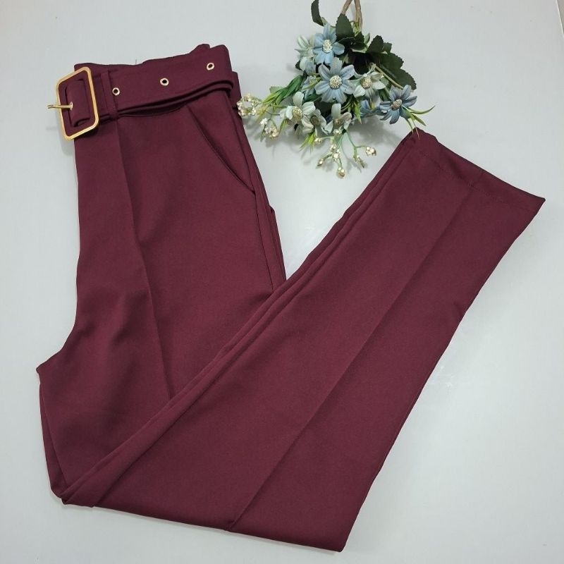 Calça Alfaiataria Social Feminina Tradicional Reta Con Cinto Estiloloso Tendencia
