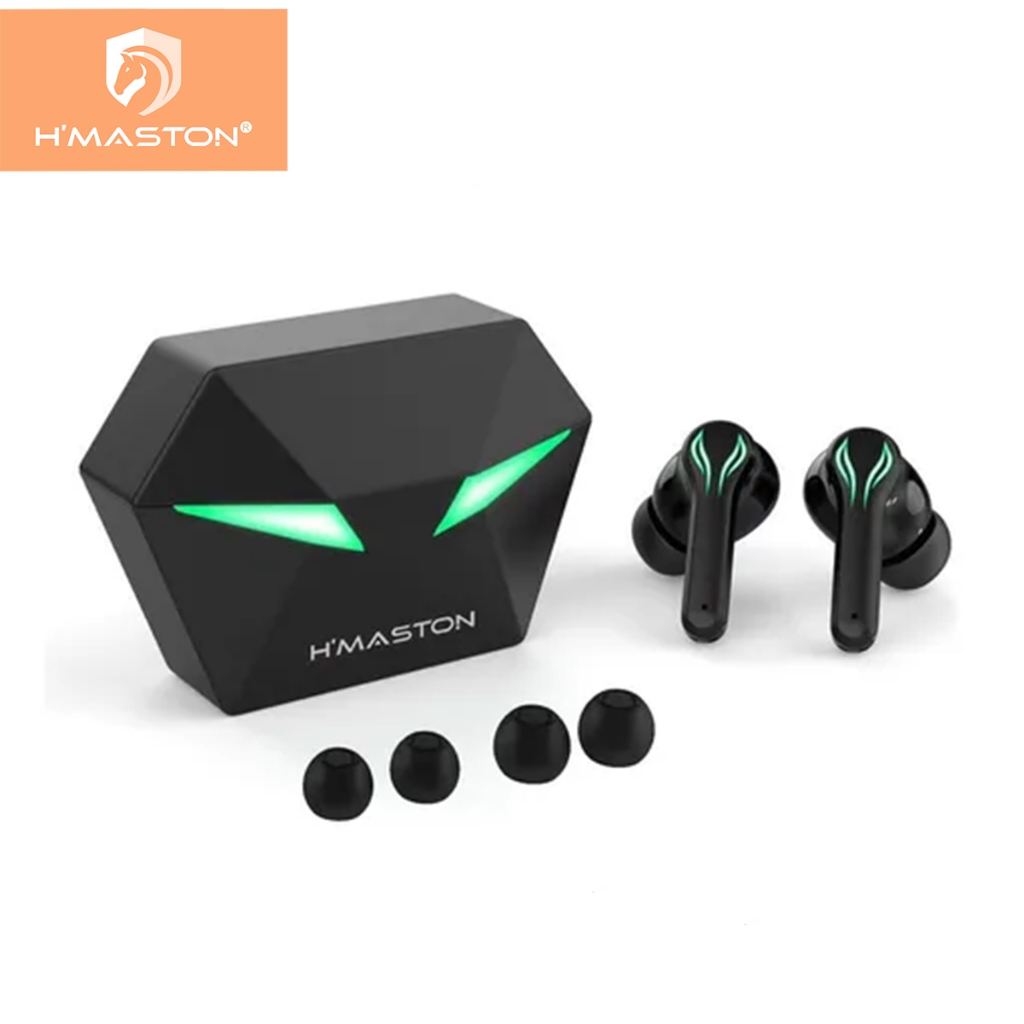 H'maston RS-30 Fone De Ouvido Gamer Sem Fio Bluetooth 5.3 Intra-auricular com Microphone e Luz LED