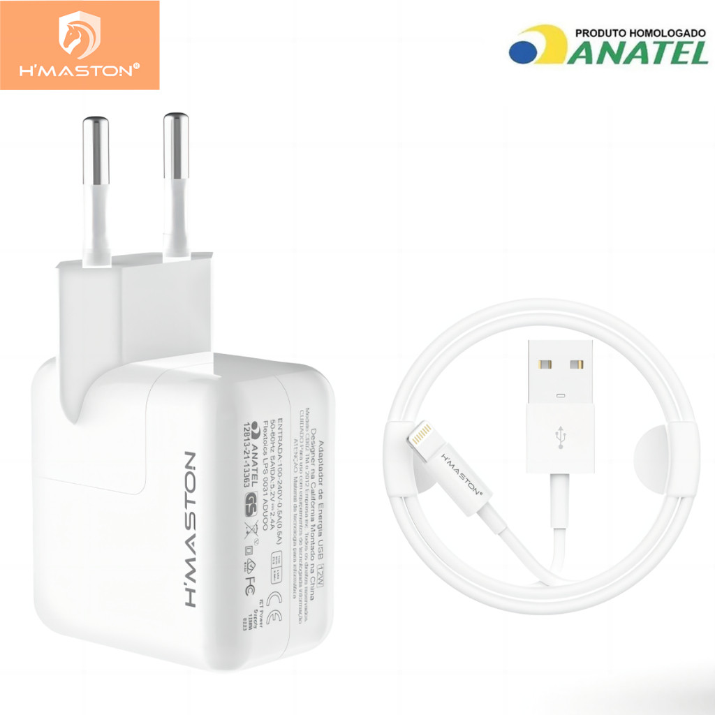 H'maston CB02/CB06 Carregador Completo Turbo 12w USB x lightning Com 1 Cabo