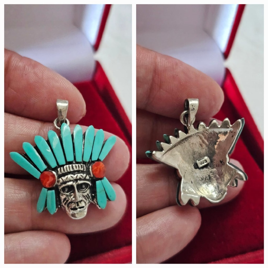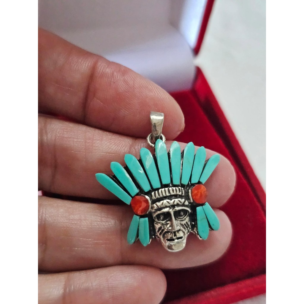 Pingente Cacique Turquesa E Coral Em Prata legitima