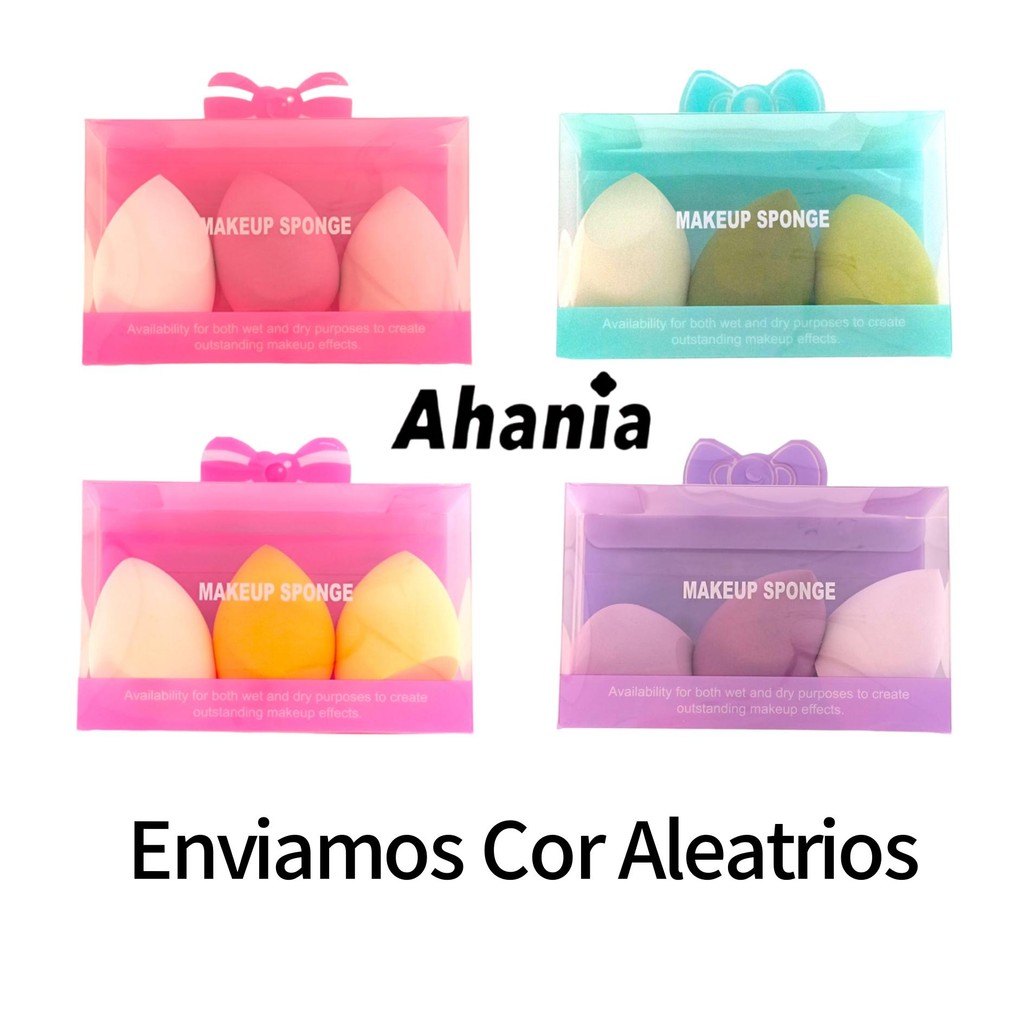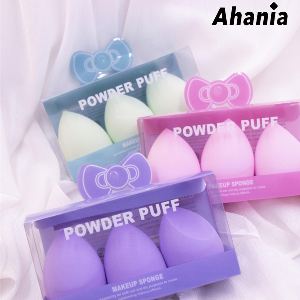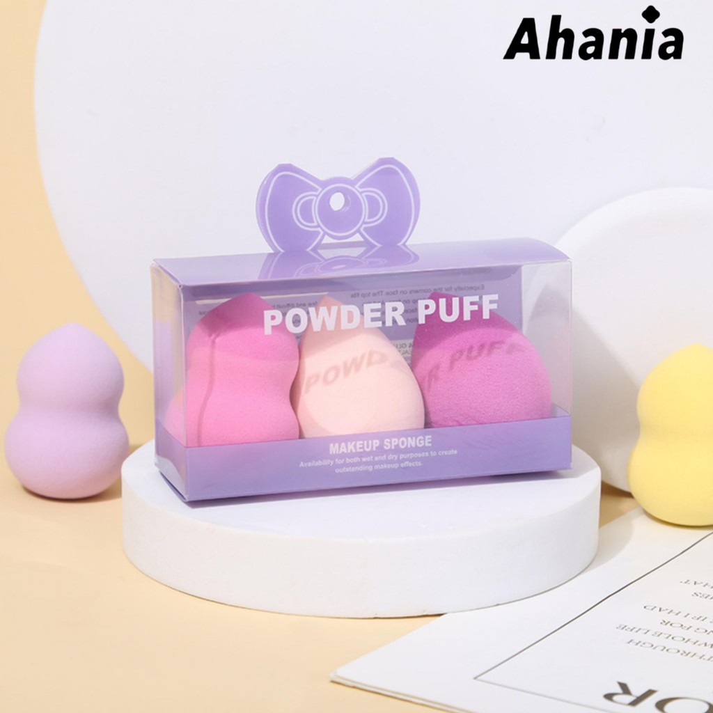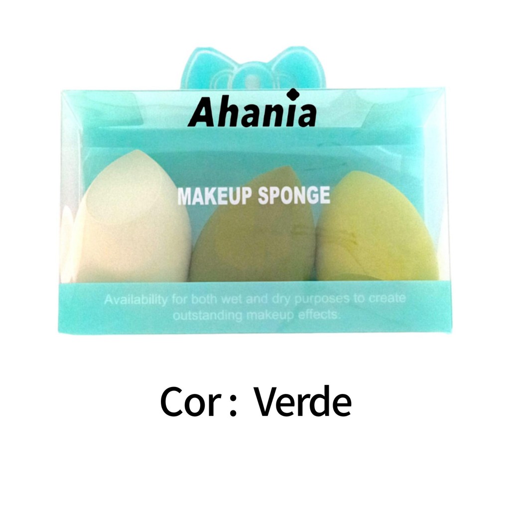 Ahania 3 Esponjas De Maquiagem Puff Formato de Gota, Cortado Chanfrado, Para Base Líquida Corretivo Super Macia Lavável