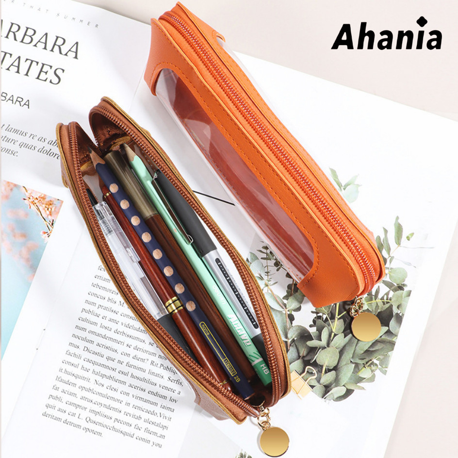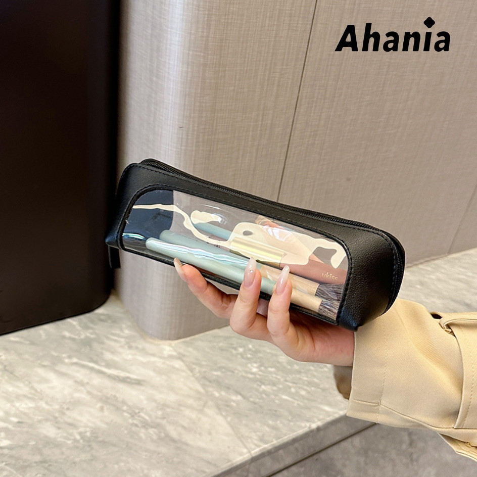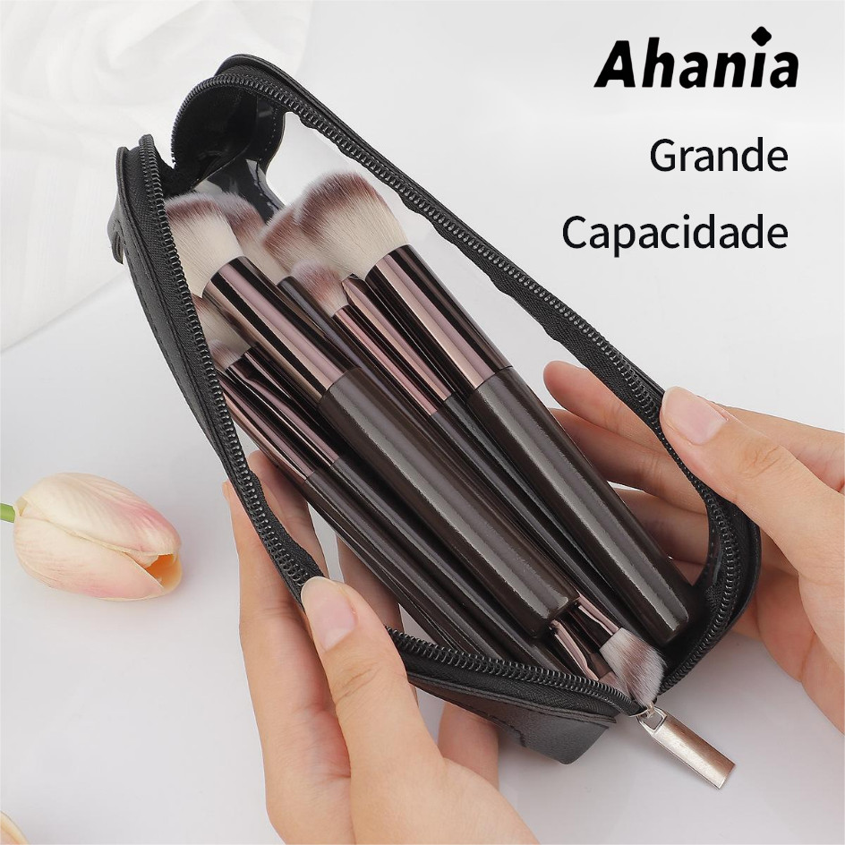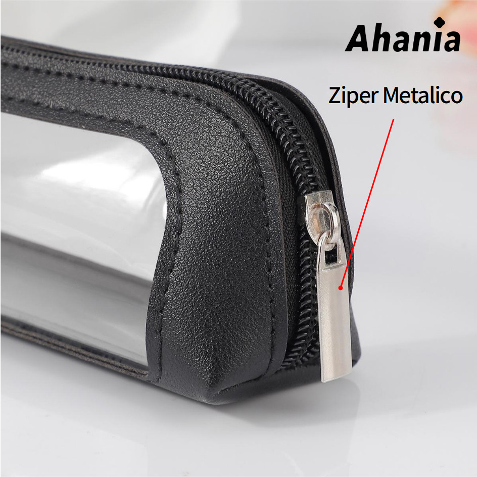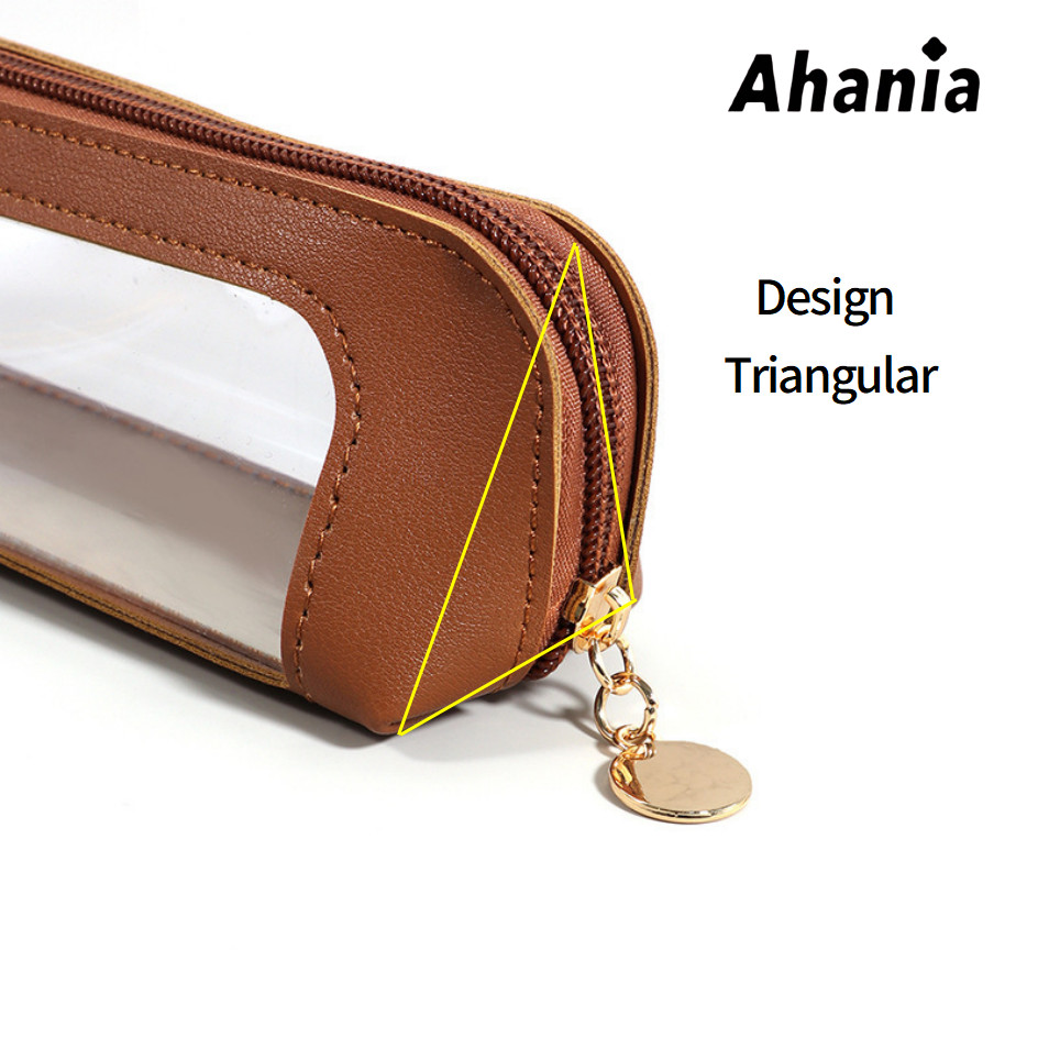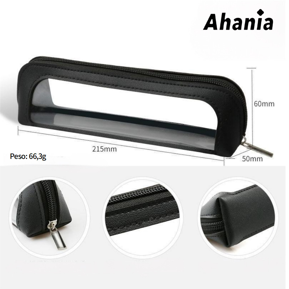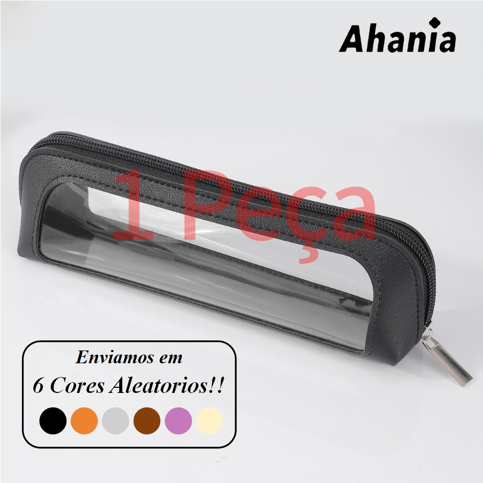 Necessaire Estojo Para Pincel de Maquiagem, Couro PU Com Janela Visível Em PVC , Papelaria Para Estudantes,Porta Canetas