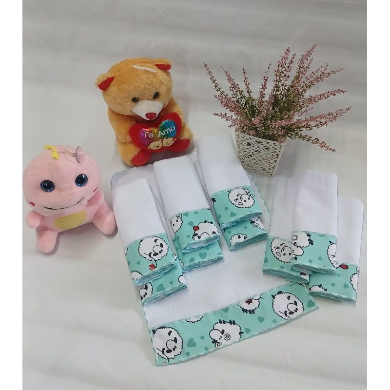 Kit com 6/10 toalhinhas de boca tecido felpudo extra macio para meninos e meninas