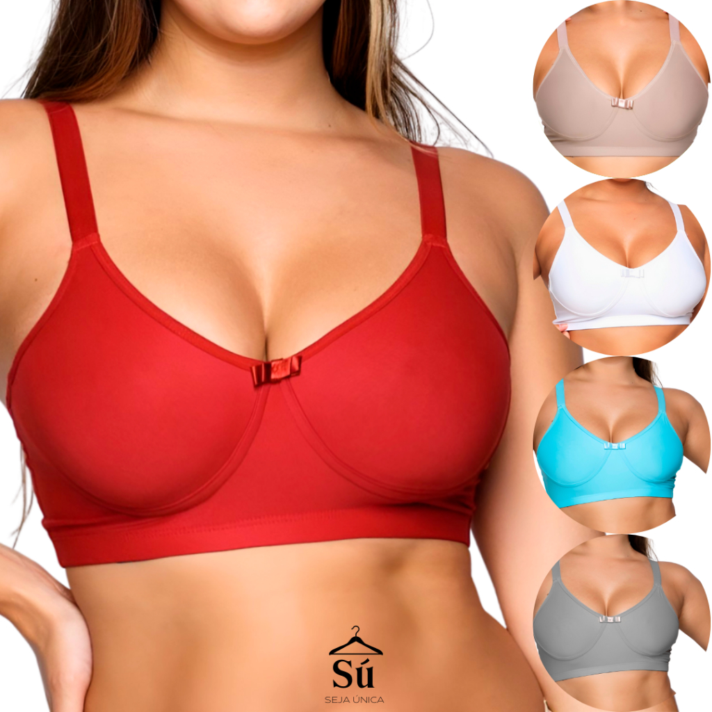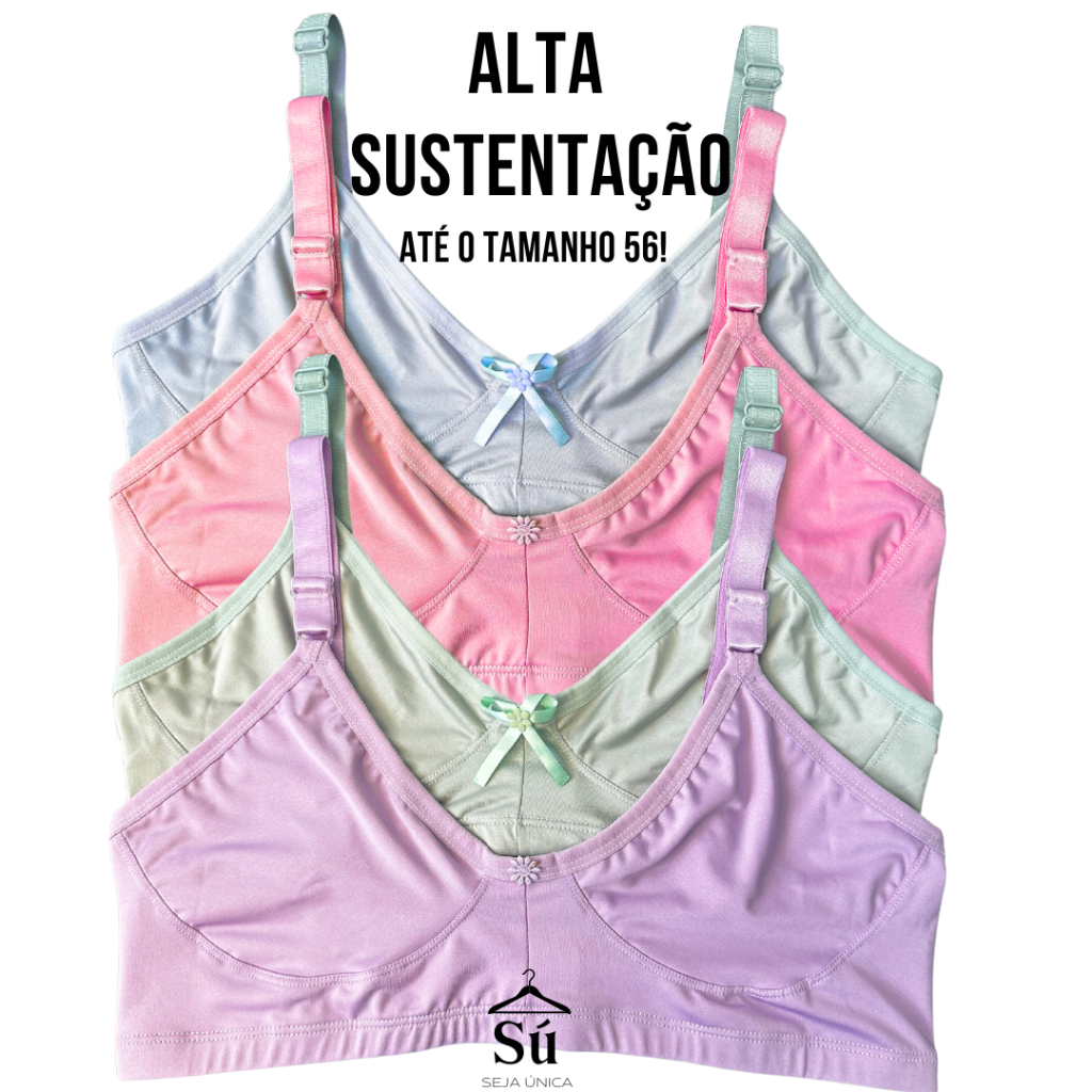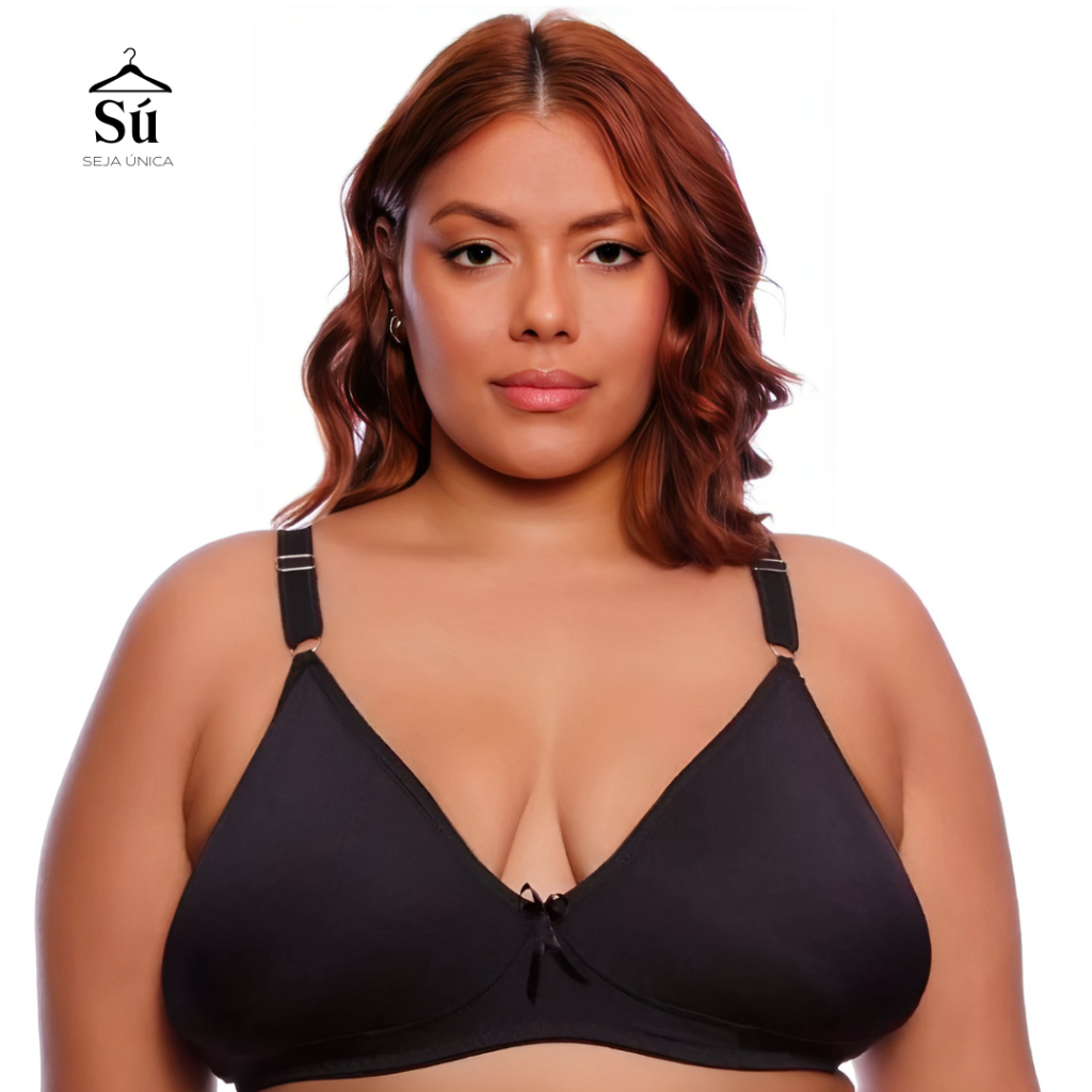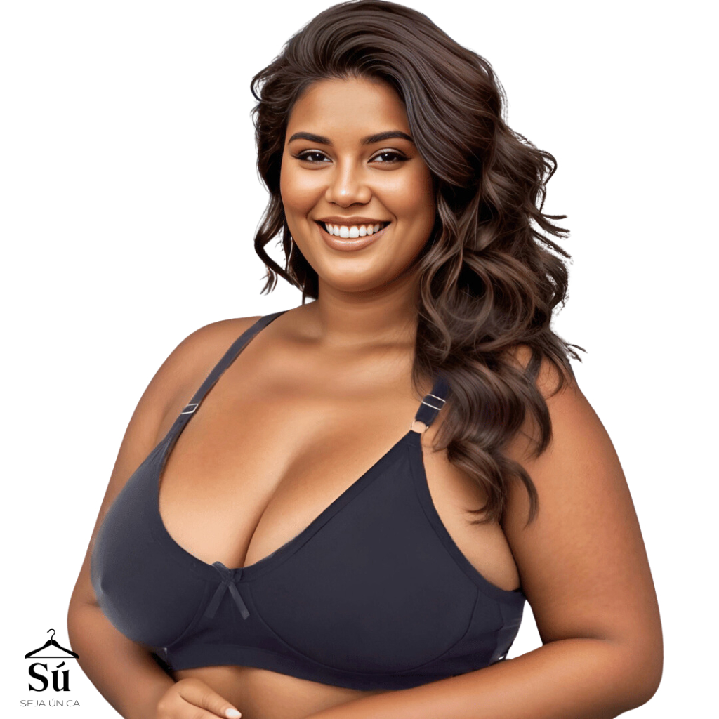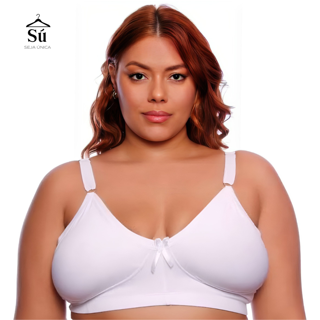 Kit 2 Sutiãs PLUS SIZE Alta Sustentação Reforçado Alças Grossas Soutien Liso Tecido Duplo Seja Única
