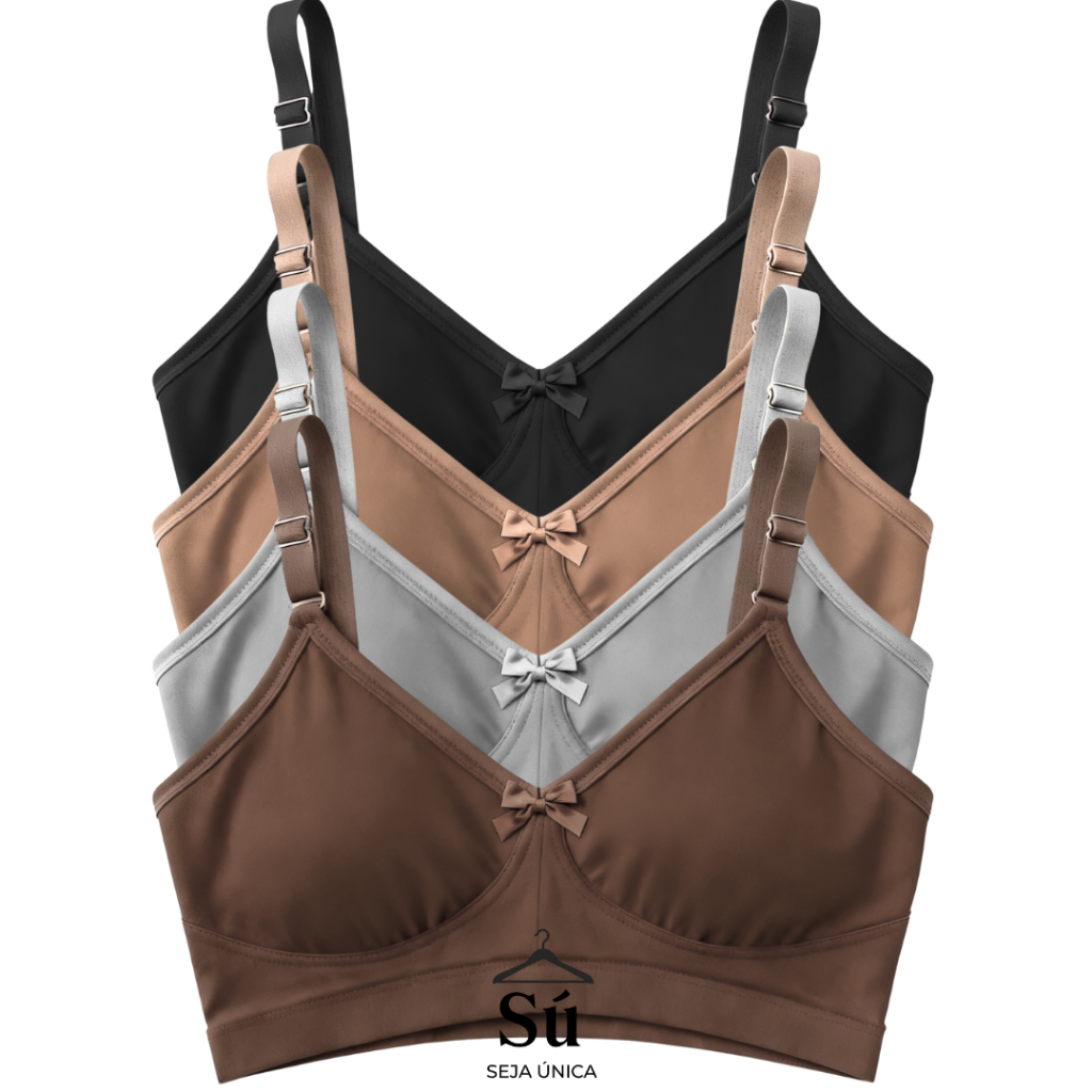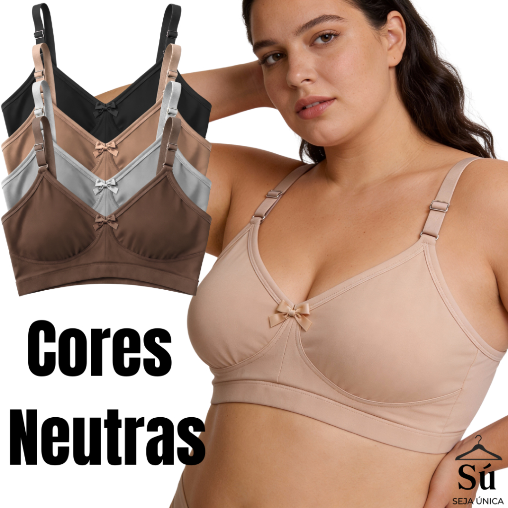 KIT 4 SUTIÃS Reforçados Plus Size Alta Sustentação Tecido Duplo Alças Grossas CORES NEUTRAS