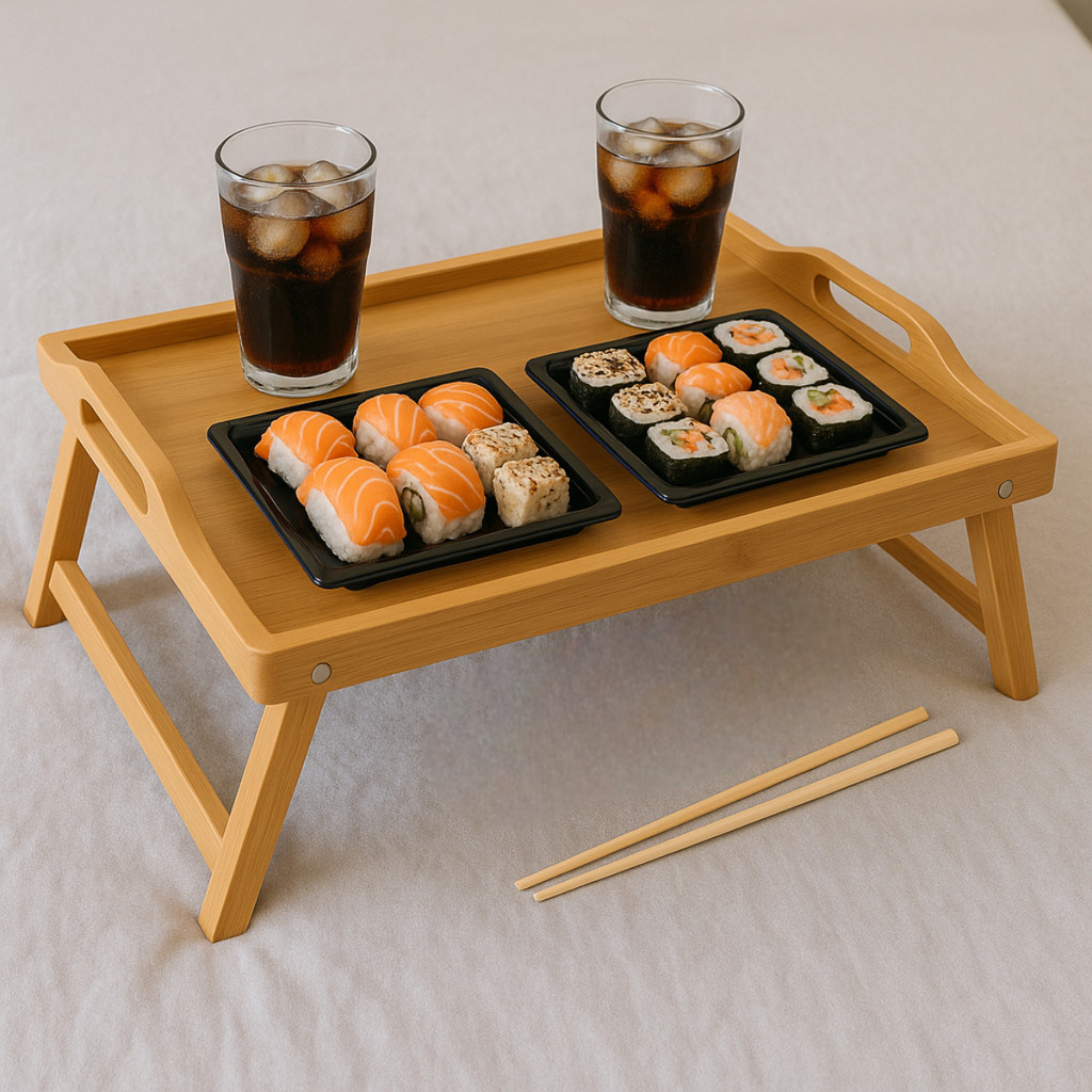 Bandeja de Bambu Café Da Manha Na Cama Em Bambu Pés Dobraveis 50x30cm Marca Kururuá