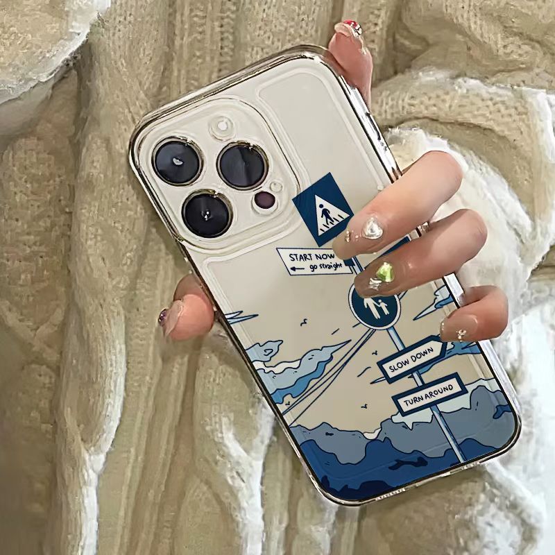 Capinha Capa Material transparente TPU Placas de trânsito IPhone XR 11 12 13 14 15 16 Pro MAX 14 15 16 Plus