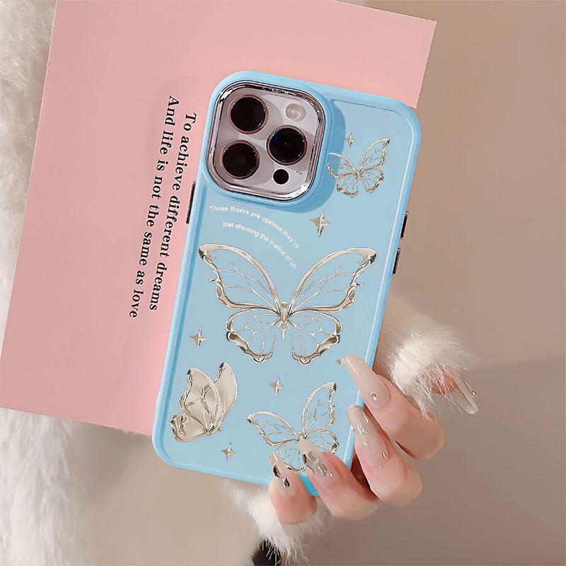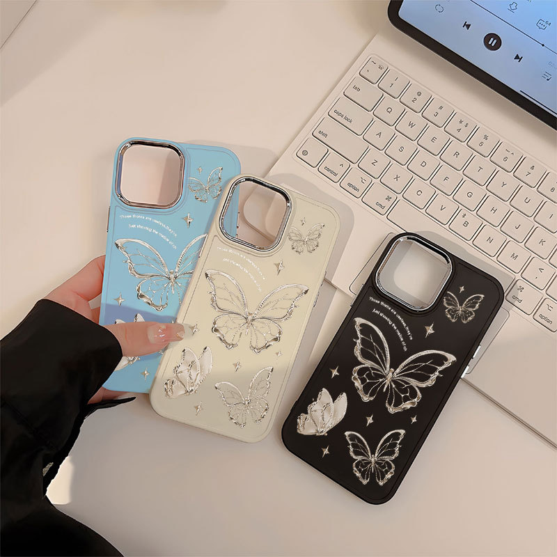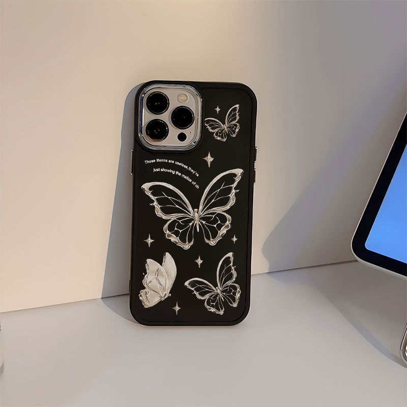 Capinha Capa silicone Anti-impacto Cristal Butterfly para iPhone 11 12 13 14 15 16 Pro MAX X XR XS MAX Plus CASE