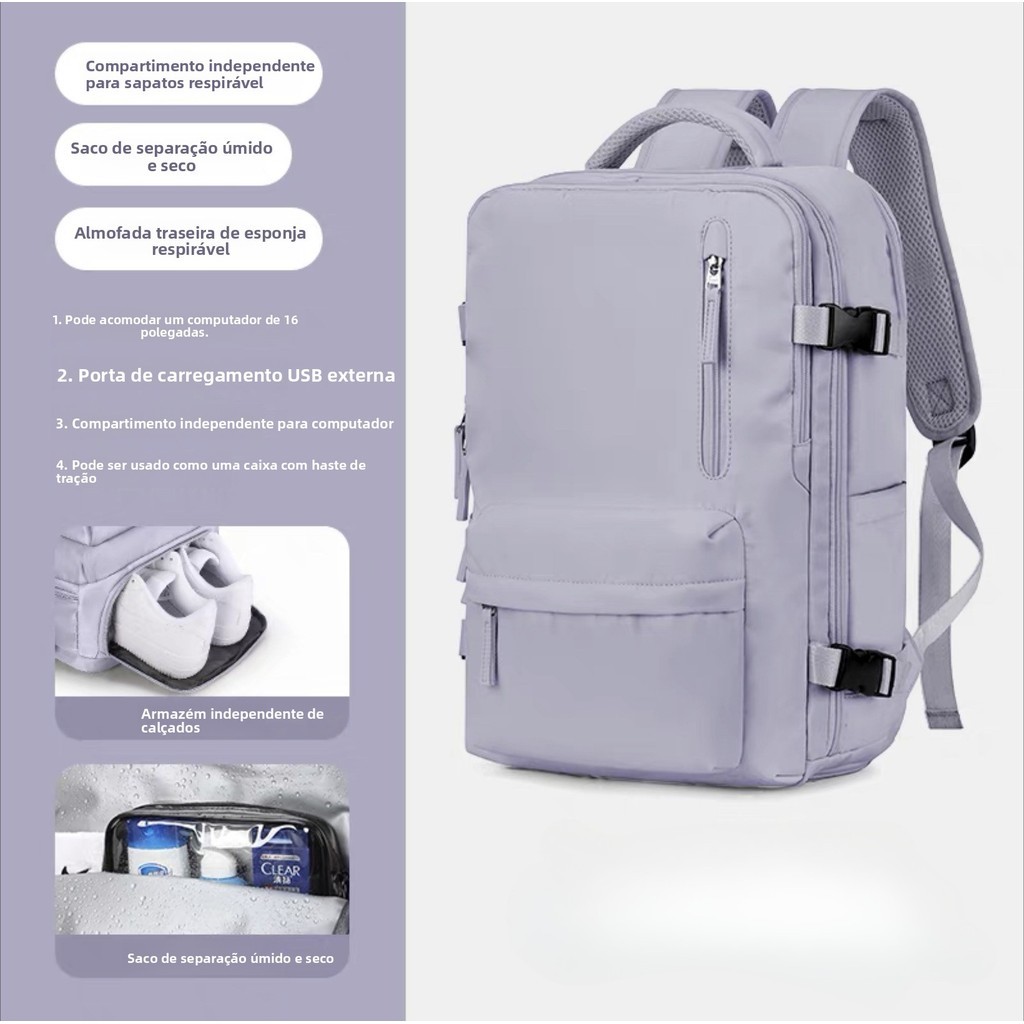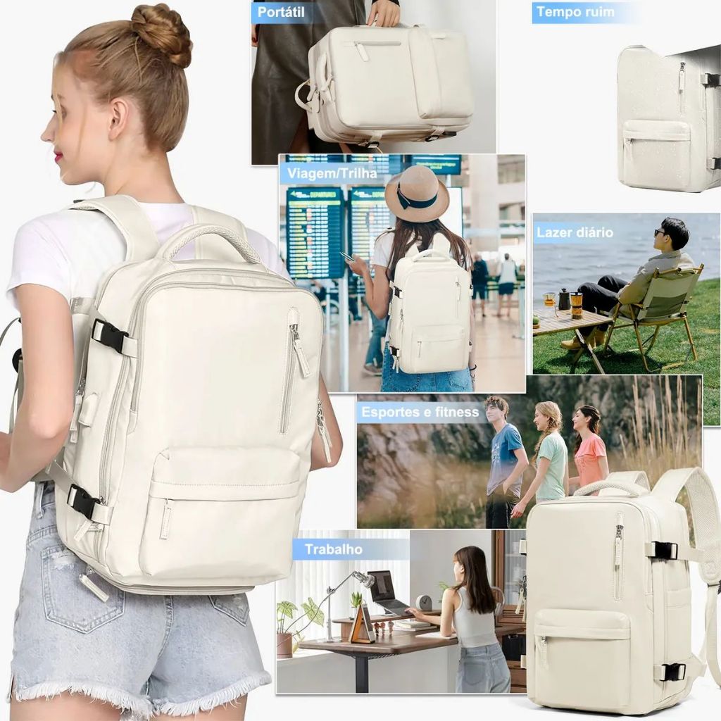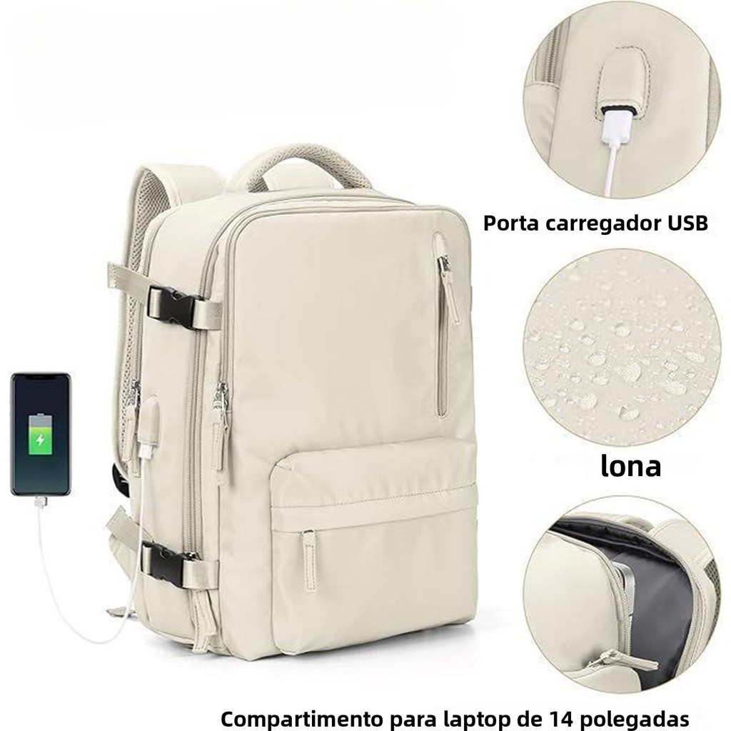 Mochila De Viagem Feminina Masculina Grande Capacidade Com Porta USB Notebook Respiravel Ideal Para Curtos Passeios