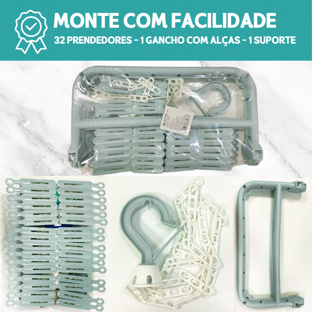 Varal de Roupas Íntimas Dobravel Com 32 Prendedores - Meias, Calcinhas e Cuecas - CH