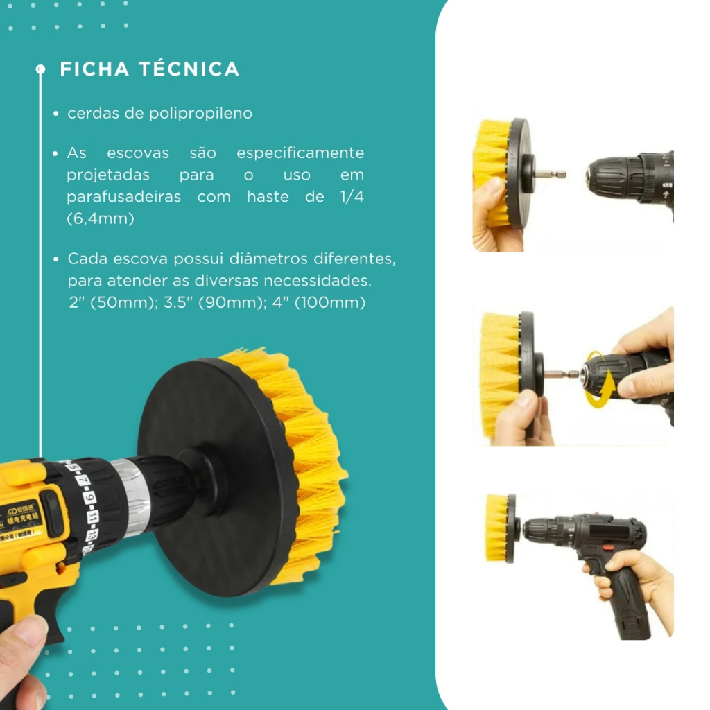 Kit 3 Escovas De Limpeza Para Parafusadeira Furadeira - CH