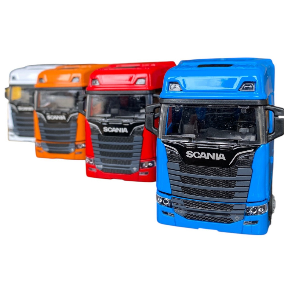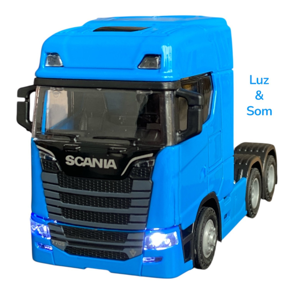 Miniatura Scania 6 Rodas Tuncado Abre Cabine Caminhão 4 Cores Ferro com Luz e Som