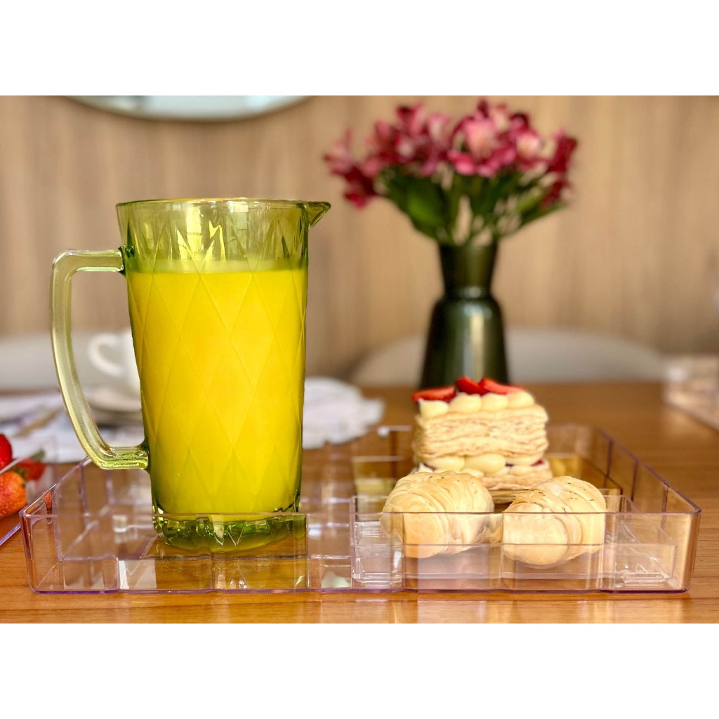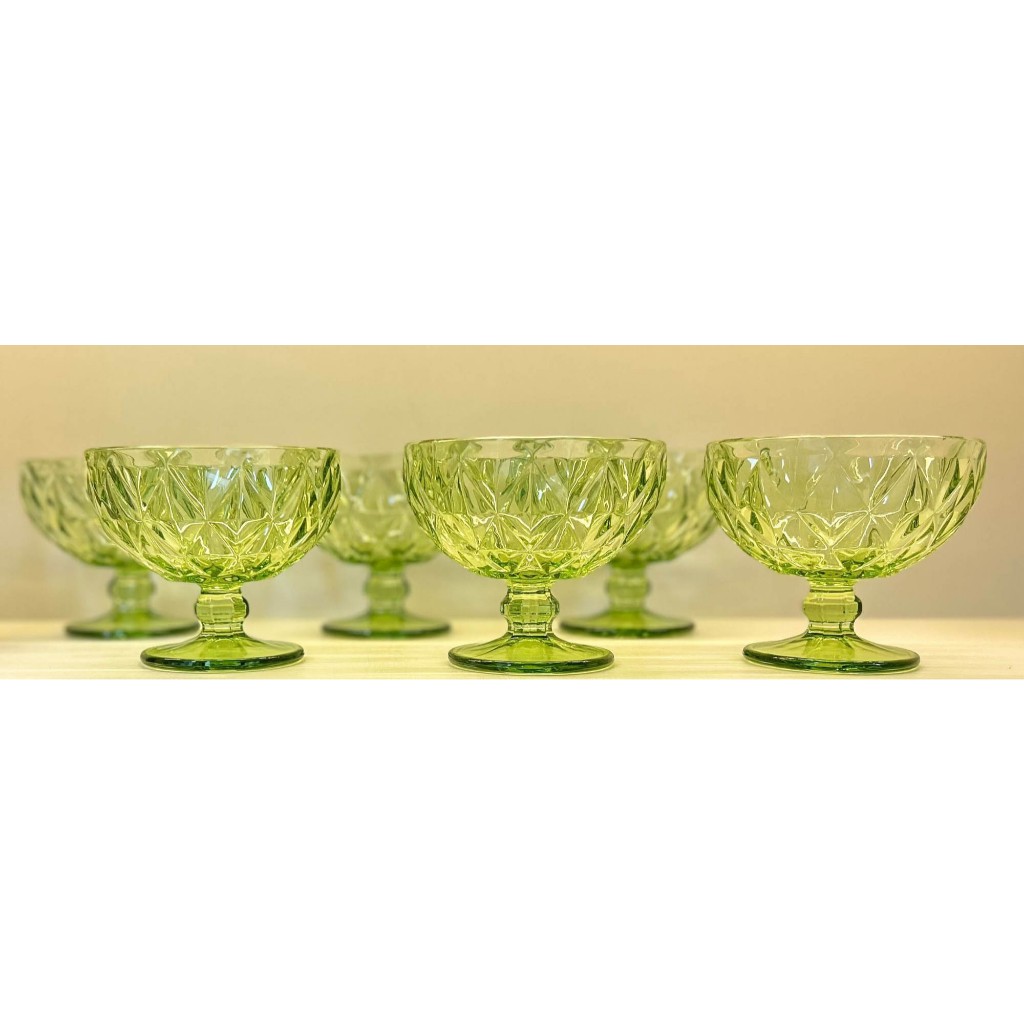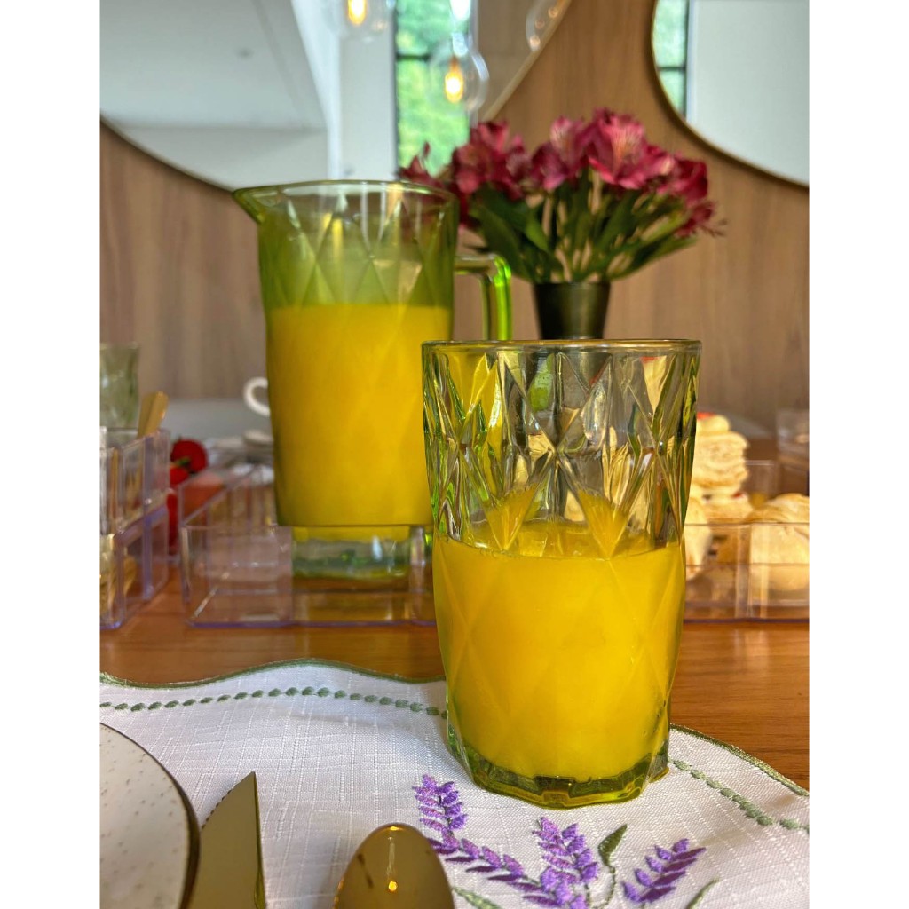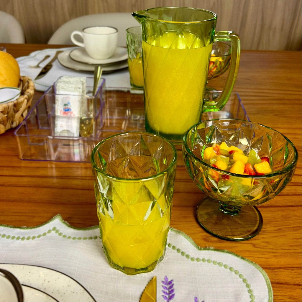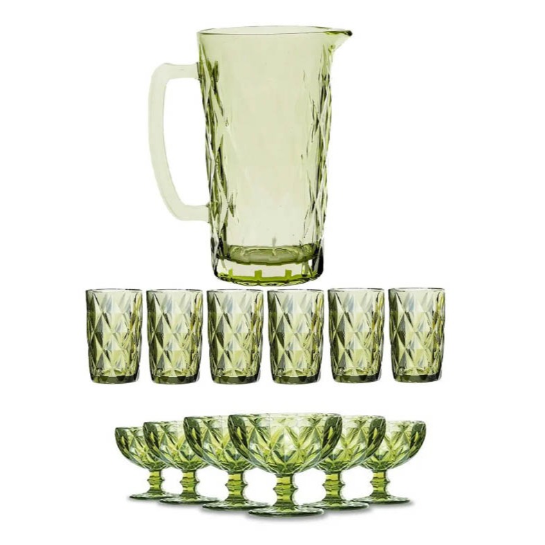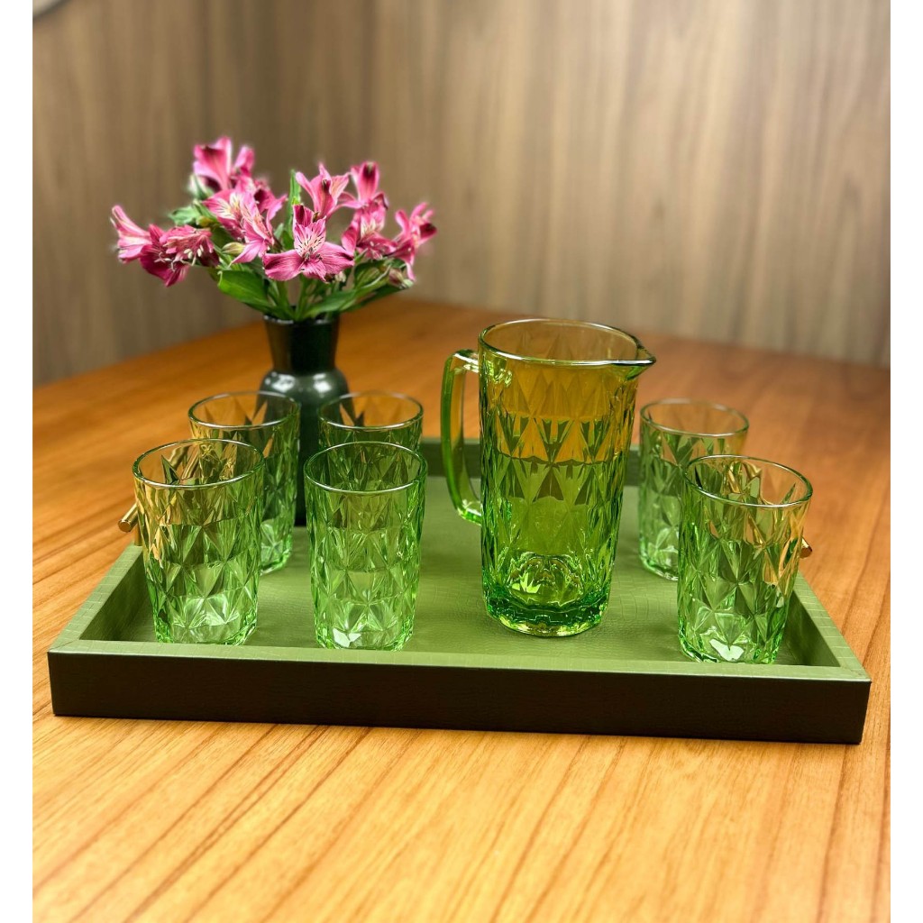 Jogo de Jarra 1,2L e 6 Copos 350ml com Jogo de Taças de Sobremesa Vidro Verde Diamond Abacaxi