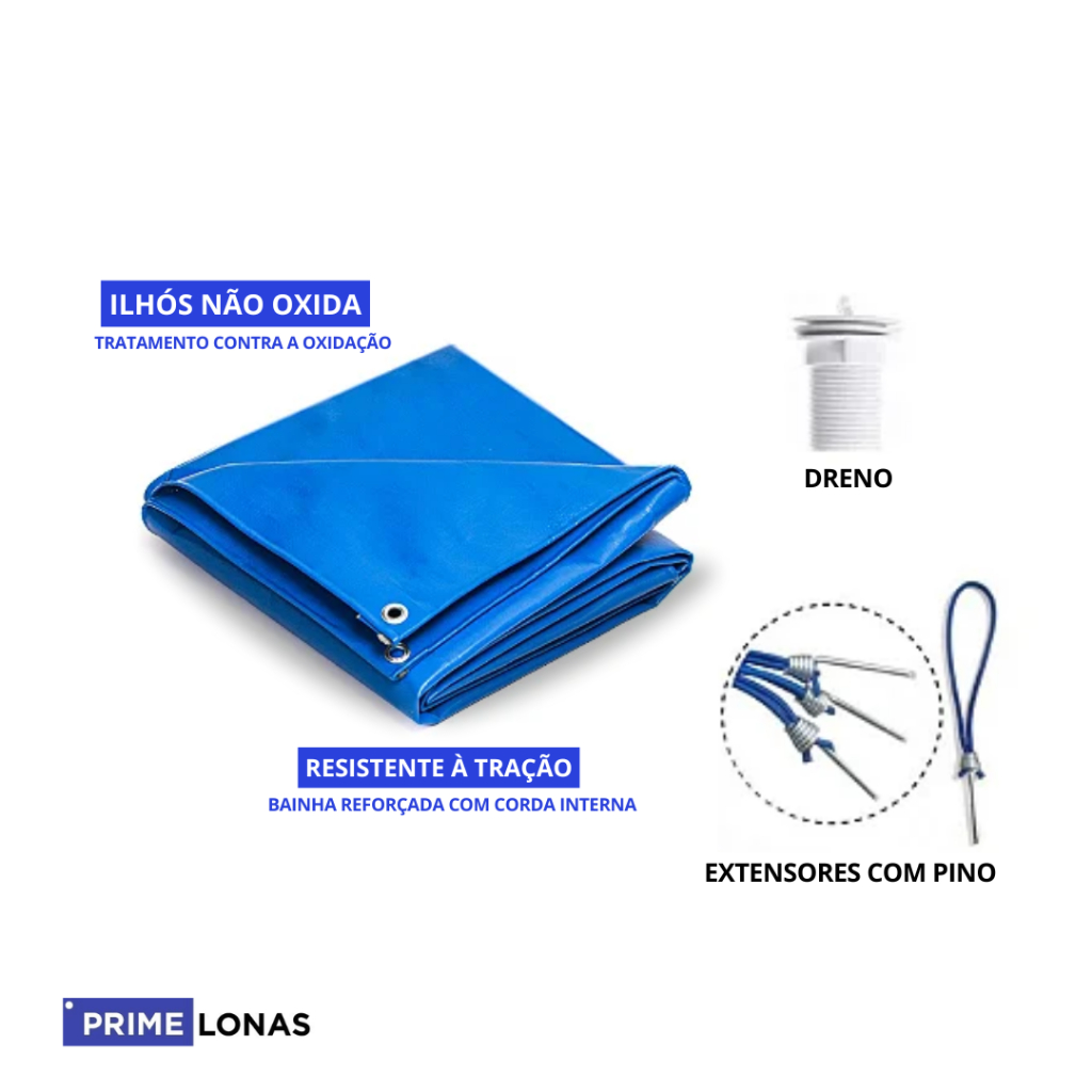 Lona multiuso Impermeável 6x6 300 Micras Azul - Primelonas SK