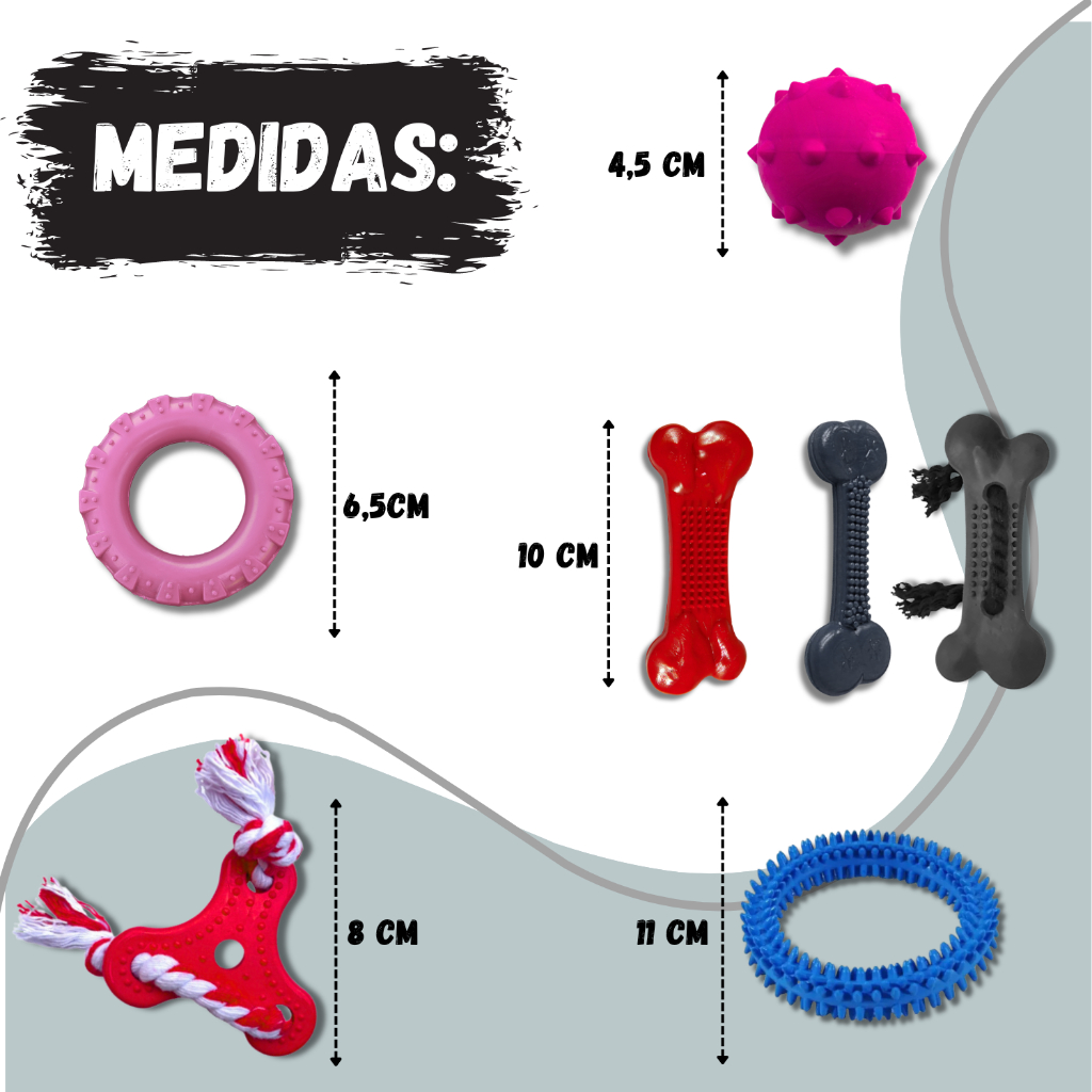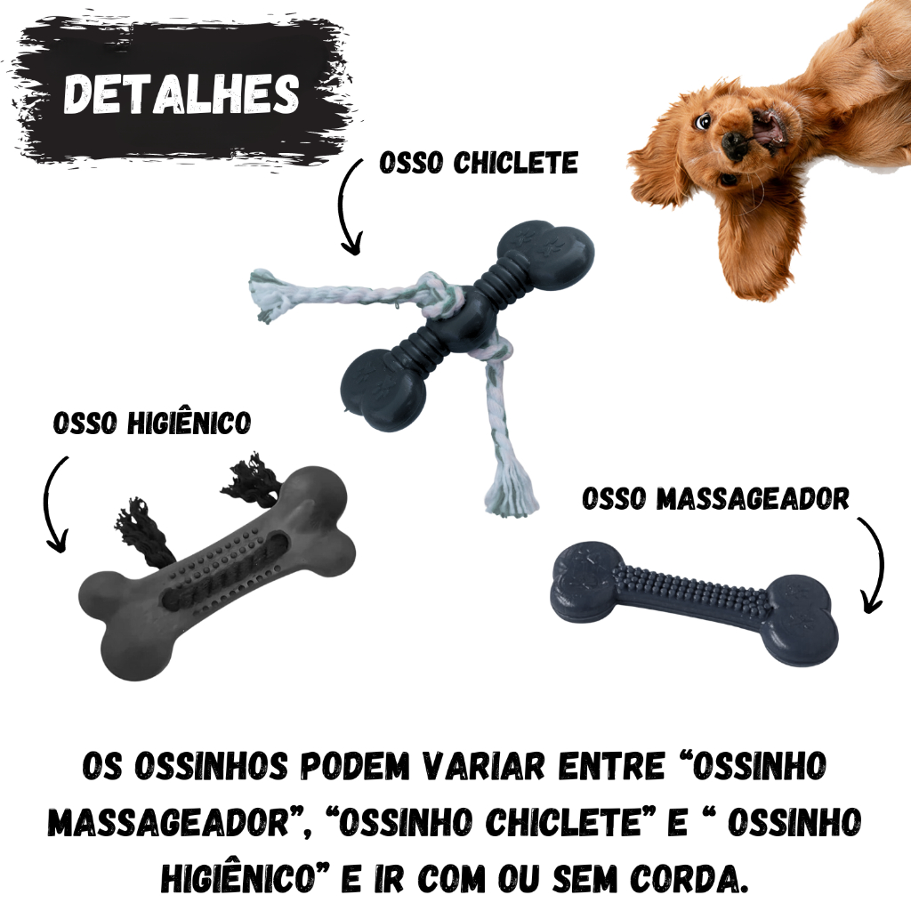 Kit 5 Brinquedos Pet para Cachorros de Pequeno Porte Ossinhos Bolinhas Pet