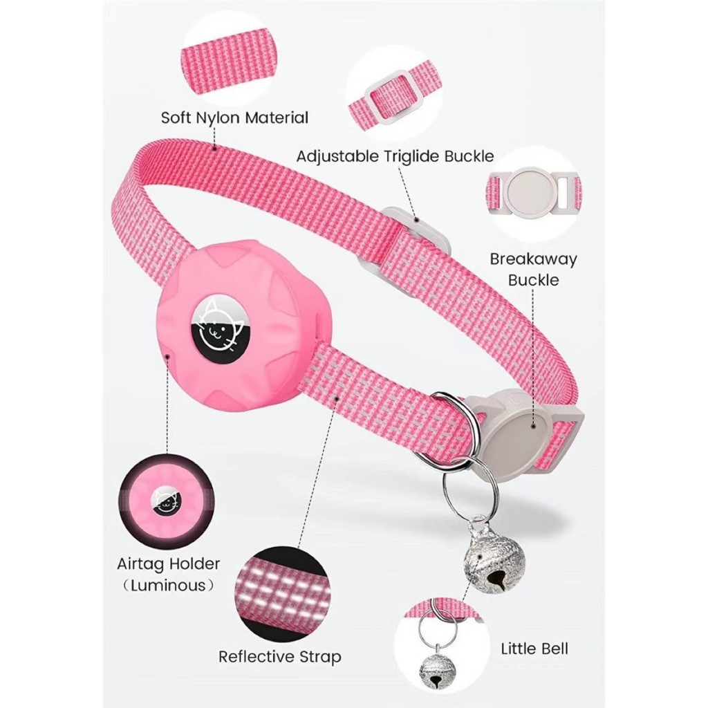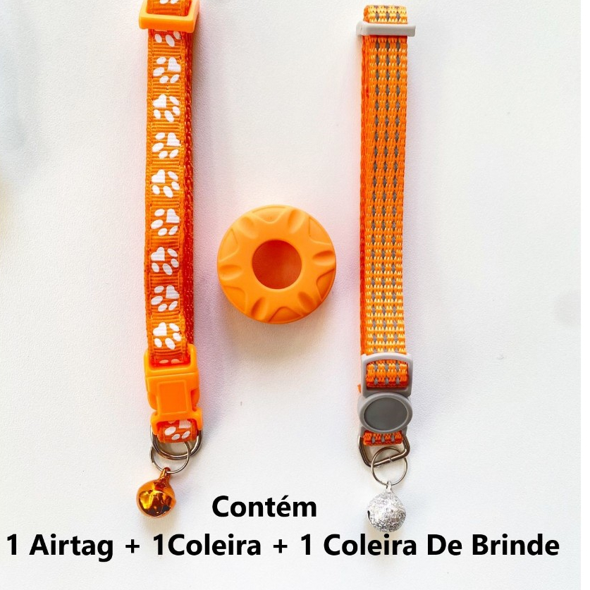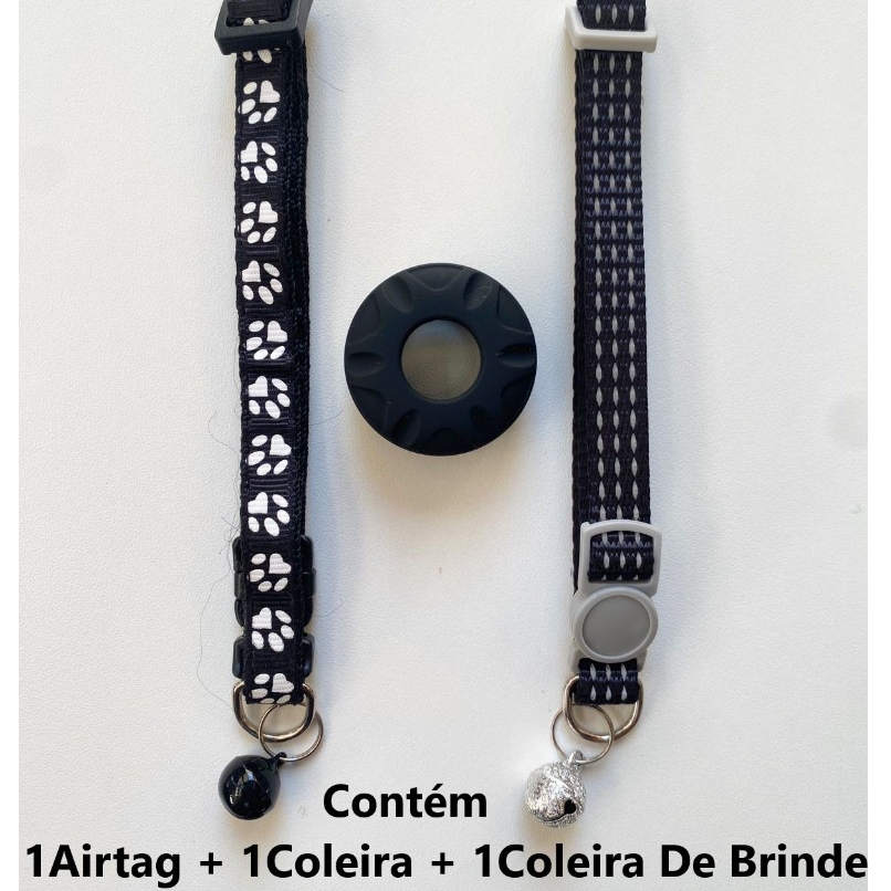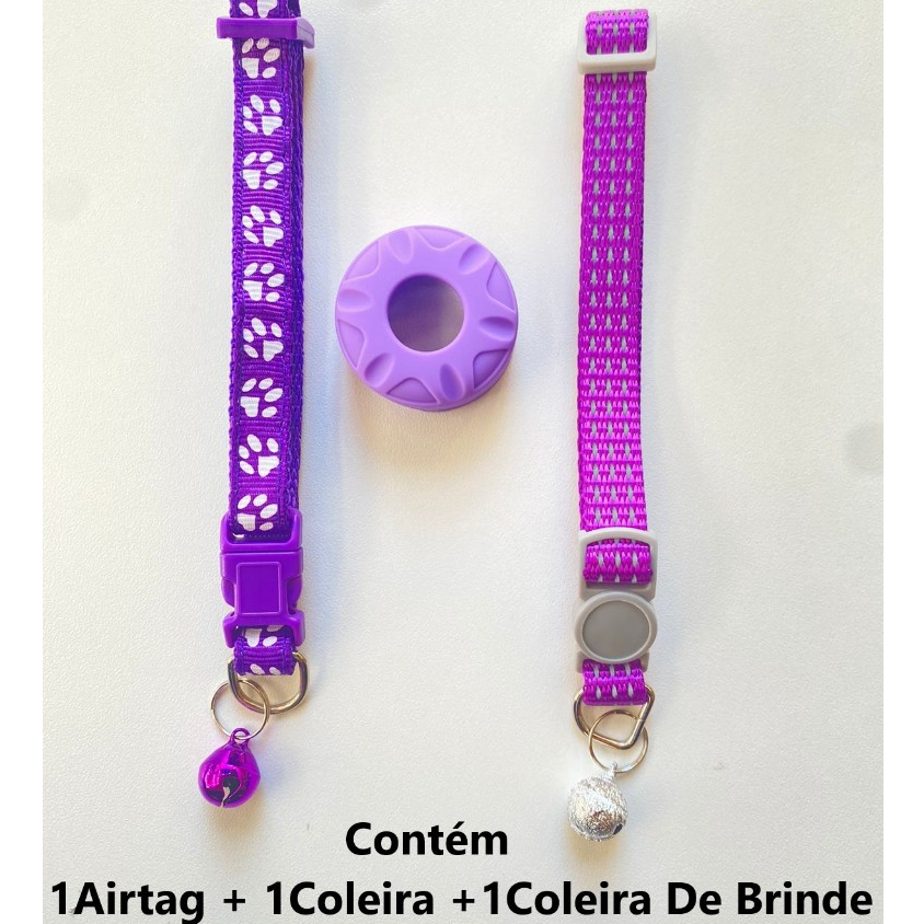 Coleira Para AirTag Refletiva Com Capa Protetora De Silicone Para Gatos e Cachorro De Nylon Ajustável Contém 2 Unidades