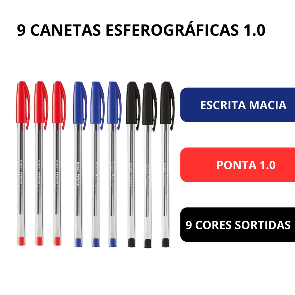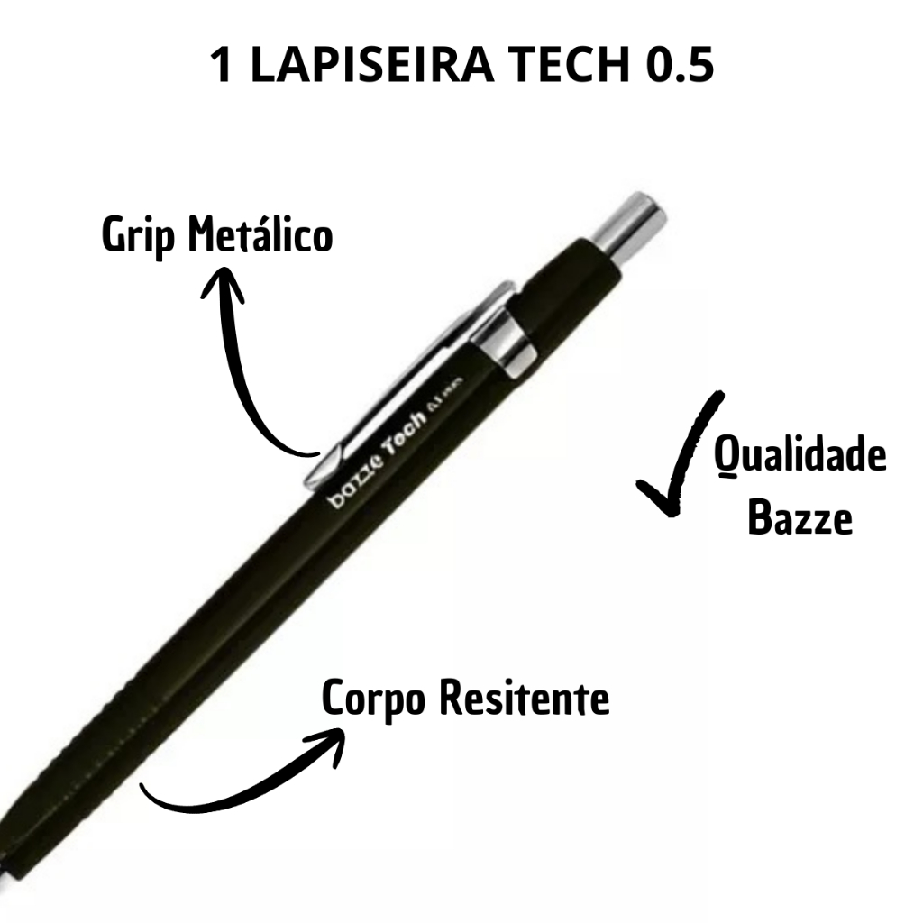 Kit Escolar Com 9 Canetas Esferograficas Dois Marcadores e Lapiseira Tecnica 05 Para estojo Volta as Aulas