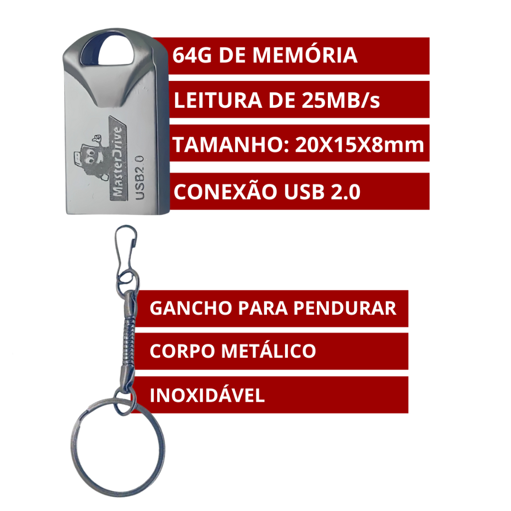 Mini Pen Drive de Metal 64GB COM 10 ANOS DE GARANTIA MASTERDRIVE