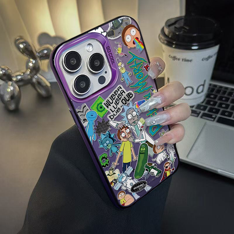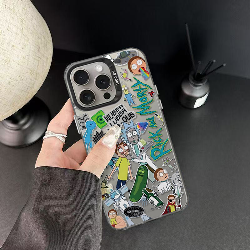 Capinha capa Anti-impacto sílica Fosco para Padrão de Rick and Morty iPhone xr xs max 7 8 11 12 13 14 15 16 pro max plus
