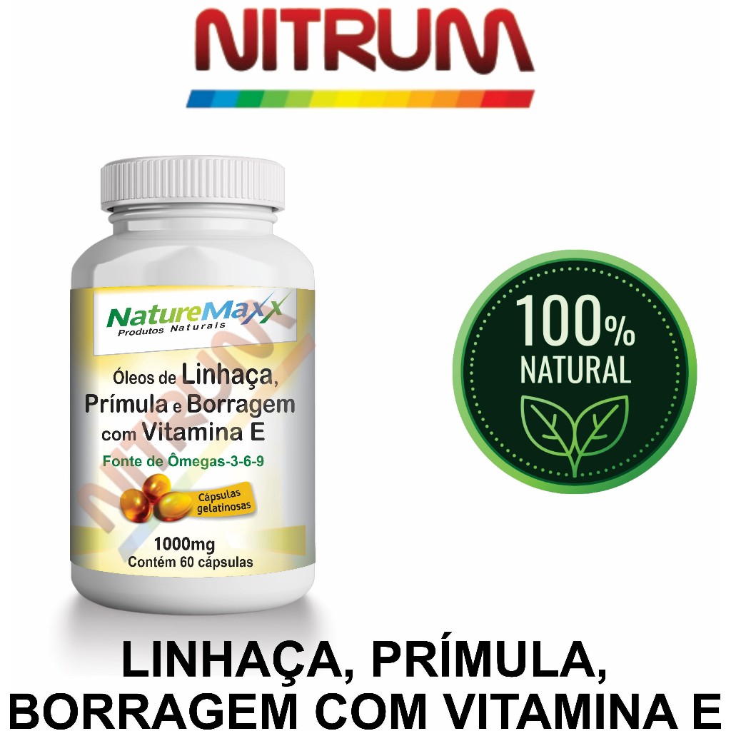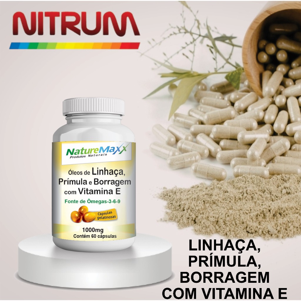 KIT 3x Óleo de Linhaça Prímula Borragem + Vitamina E 1000mg C/60 Cápsulas Menopausa - suplemento alimentar - NitrumCaps