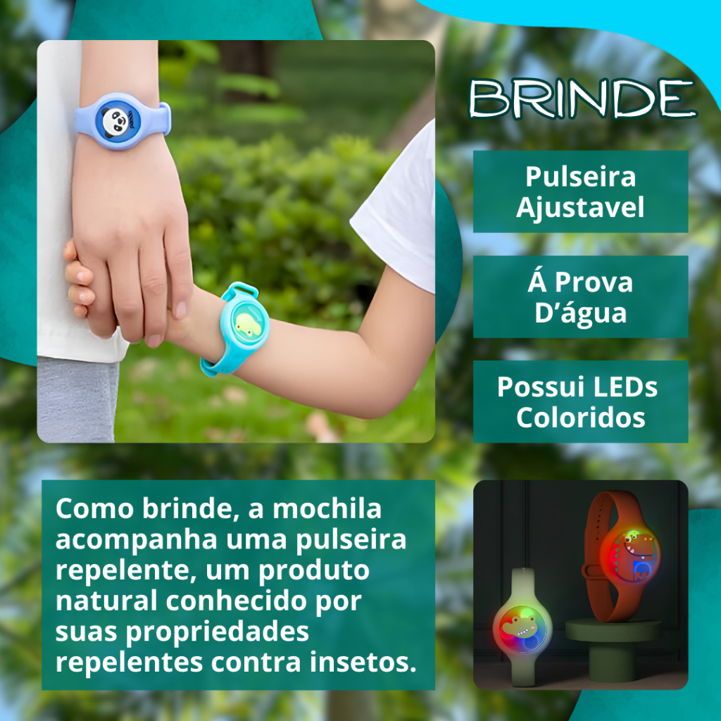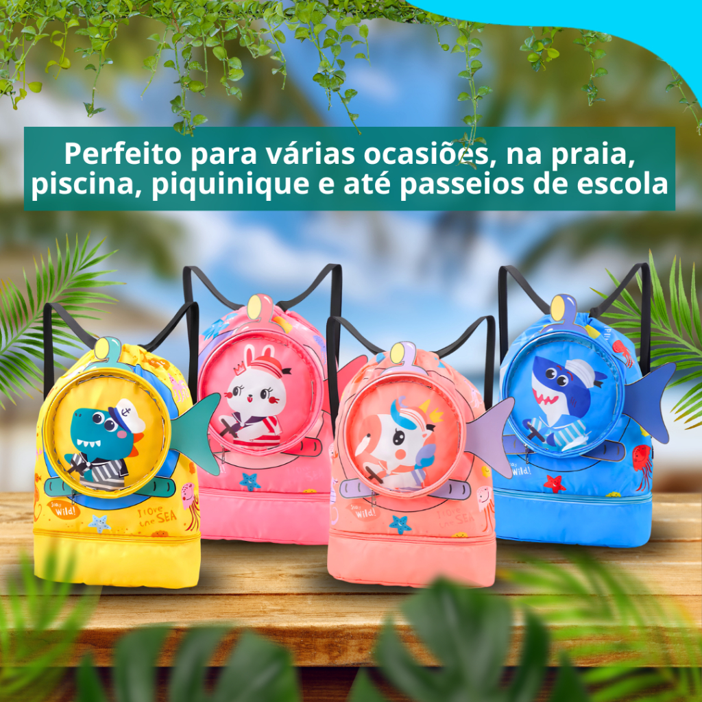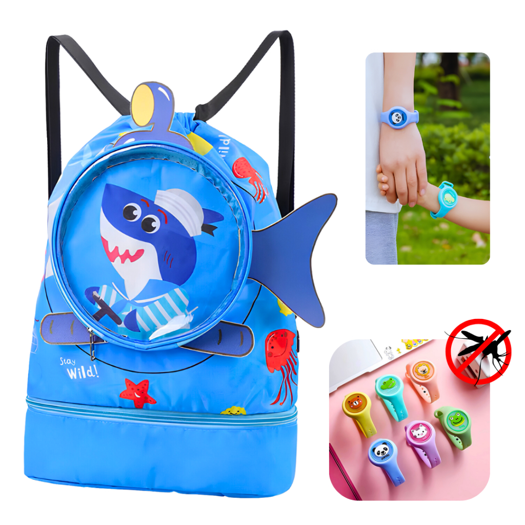 Mochila de praia piscina impermeável Infantil menina menino natação pulseira repelente com led 42 cm