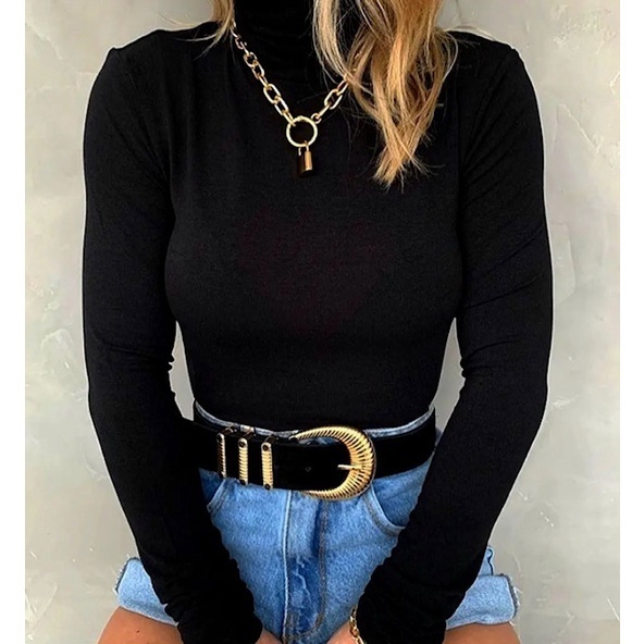 Body Feminino Inverno Gola Alta – Manga Longa em Malha Quentinha